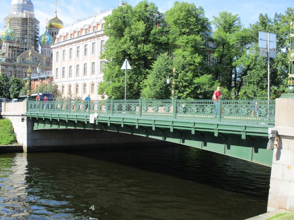 Объемно-планировочное решение:местоположение (установлено на Садовом мосте № 2, через р. Мойку у Марсова поля), габариты, конфигурация;металлическая решетка, завершенная парапетным ограждением с четырьмя фонарями.Архитектурно-художественное решение:фасадные арки фланкированы металлическим ограждением из парапетных столбиков в виде ликторских связок, увенчанных секирой;между столбиками ажурная решетка из стрел, установленных вертикально и горизонтальных фризов с мотивами «пояс меандра», колец (2), «бегущая волна»; между фризами в центре – литые накладные двусторонние геральдические композиции из перекрещенных ликторских связок с секирой, меча с львиной маской на рукояти, стрелы, щита с изображением мужского маскарона со змеями и шлема с плюмажем;парапетное ограждение моста фланкировано гранитными постаментами, квадратными в плане, с торшерами (4):на постаментах из сплющенной сферы на квадратном профилированном основании;в виде связок копий с перехватами из лавровых гирлянд; в центральной части с двусторонними накладными композициями из перекрещенных мечей со щитом, декорированным львиным маскароном;с навершием из стрелы на кронштейне, увенчанной пятиконечной звездой в дубовом (?) венке с шишкой в завершении;к кронштейнам крепятся шестигранные фонари матового стекла с конусообразным завершением;над стеклами фонари декорированы литой гирляндой из листа аканта (?);детали торшеров и фонарей с золочением.