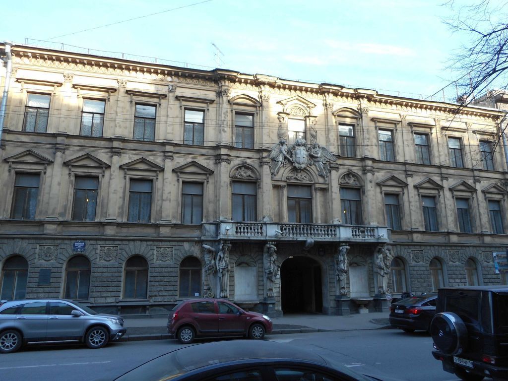 Объемно-пространственное решение:габариты и конфигурация здания (прямоугольного в плане), состоящего из лицевого корпуса, расположенного по красной линии Большой Морской ул. и четырех дворовых корпусов, включая воротные проезды лицевого корпуса и поперечного дворового, объемно-планировочная композиция дворовых пространств;габариты, конфигурация (скатная) и высотные отметки крыш, материал кровли (листовой металл).Конструктивная система:наружные и внутренние кирпичные капитальные стены;междуэтажные перекрытия – местоположение;своды:крестовые на подпружных арках – воротного проезда лицевого корпуса;коробовый – Танцевального зала (пом. № 67, площадью 133,6 кв.м.);коробовый на подпружных арках с распалубками – Обеденного зала (пом. № 72, площадью 127,3 кв.м.);световой фонарь – местоположение (Темная комната, пом. № 92), габариты, конфигурация, конструкция; оплетка – материал (дерево),рисунок (геометрическая расстекловка), материалзаполнения ячеек (стекло);исторические лестницы – местоположение, габариты, конфигурация, архитектурно-художественное оформление, включая:парадную лестницу лицевого корпуса (1-ЛК) – распашную, с мраморными ступенями и площадками, с латунными ковродержателями с кольцами; с литым ажурным чугунным ограждением с рисунком из розетт с пальметтами в обрамлении акантовых волют, по верхнему поясу фризы с мотивом «бегущая волна»; розетты из золоченой бронзы; в центре секции ограждения в уровне 2-го этажа геральдическая композиция из горностаевой мантии и герба с равноконечным крестом и тремя надписями «FERT», увенчанных короной; композиция обрамлена дубовым венком и четырьмя пальметтами, боковые – в дубовых гирляндах; с деревянным (под красное дерево) профилированным поручнем с изгибом;лестницу лицевого корпуса (2-ЛК) – трехмаршевую, на косоурах, со ступенями лещадной плиты; в габаритах лестничной клетки шахта лифта, с литым декором из фризов «пояс меандра» и розетт;на промежуточных площадках выходы из шахты с ажурными дверцами с орнаментом из листьев и волют, с поясом квадратных розетт по верхнему краю, с навершием в виде волют с розеттами;лестничные марши и оконные проемы лестницы – с чугунным ограждением в виде вертикальных парных стоек с ажурными пальметтами сверху и снизу; с профилированным деревянным поручнем; покрытие полов площадок:мраморные плиты белого и серого цветов, рисунок укладки – «шашки» – в уровне 1-го этажа;лещадная плита, рисунок укладки – «ромбы» – в уровне 2-го этажа;наливные с мраморной крошкой разных сортов мрамора, в технике тераццо – в уровне 3-го этажа;лестницу западного дворового корпуса (8-ЛК) – с литым ажурным чугунным ограждением с чередующимся рисунком из розетт с пальметтами в обрамлении акантовых волют, по верхнему поясу фризы с мотивом «бегущая волна» и вертикальных, обращенных зеркально друг к другу пальметт с розеттой в центре; боковой устой с акантовым кронштейном;детали из золоченой бронзы; с деревянным (под красное дерево) профилированным поручнем;лестницу северного дворового корпуса (4-ЛК) – средистенную, со ступенями и площадками лещадной плиты, на поворотных площадках с забежными ступенями; антаблемент на опорных колоннах – местоположение (парадный вестибюль лицевого корпуса, танцевальный зал), габариты, конфигурация;Объемно-планировочное решение:историческ
