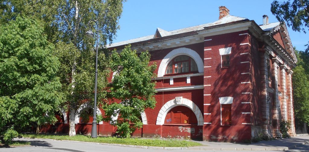 Объемно-пространственное решение:исторические габариты и конфигурация двух-трехэтажного прямоугольного здания с четырьмя ризалитами по крайним осям западного и восточного фасадов, двусветным объемом полуротонды с примыкающим одноэтажным прямоугольным объемом тамбура по северному фасаду и раскреповкой по центральным осям южного фасада;исторические конфигурация и габариты вальмовых (крыши основного объема здания и полуротонды) и скатной (крыша тамбура) крыш; высота коньков крыш; исторический материал окрытия крыш (металл).Конструктивная система: материал отмостки – гранитная плита;исторические наружные кирпичные капитальные стены;внутренние капитальные стены – местоположение, материал (кирпич);исторические отметки межэтажных перекрытийопорные столбы с системой подпружных арок по первому этажу;историческая парадная лестница: местоположение (в объеме полуротонды), габариты, тип (забежная), ограждение верхней площадки – местоположение, габариты, материал (металл), техника исполнения (литье), рисунок (растительный орнамент);историческая чердачная лестница: местоположение (северо-западный ризалит), габариты, тип (винтовая), материал (металл), оформление (фигурный рисунок подступенков, фигурная форма крепежных элементов);лестница тамбура – местоположение, габариты, тип (маршевая), материал (известняк) и профиль ступенек;коробовые с распалубками своды помещений первого этажа.Архитектурно-художественное решение фасадов:историческая отделка фасадов:лицевая кирпичная кладка с выделением цветом исторически оштукатуренных архитектурных деталей, руст;материал отделки цоколя: гранитные блоки;исторические оконные и дверные проемы – местоположение, габариты, конфигурация (прямоугольная, полуциркульная – оконные проемы восточного и западного фасадов, лучковая – проемы восточного и западного фасадов объема третьего этажа);исторические рисунок и материал оконных и дверных заполнений;оформление углов ризалитов, простенков ротонды и углов тамбура рустованными лопатками;оформление углов объема третьего этажа лопатками;ступенчатые ниши с полуциркульным завершением с вписанными в них проемами по первому и второму этажам восточного и западного объемов, оформленные архивольтами, рустованными с замковыми камнями в уровне первого этажа;оформление раскреповки по южному фасадурустованными квадратными пилястрами с фигурными базами и капителями;оформление прямоугольных оконных проемов ризалитов, полуротонды с тамбуром, южного торцевого фасада и лучковых проемов объема третьего этажа лучковыми перемычками с замковыми камнями (проемы первого этажа полуротонды с тамбуром и южного фасада и объема третьего этажа) и подоконными карнизами с поясом стилизованных машикулей (оконные проемы тамбура);межэтажный фриз с подоконными прямоугольными филенками, образованный тягами по западному и восточному фасадам;профилированные межэтажные карнизы по фасаду полуротонды и раскреповке южного фасада;профилированный ступенчатый венчающий карниз с известняковыми мутулами в завершении восточного и западного фасадов и полуротонды;профилированный карниз в завершении объема тамбура и объема третьего этажа;треугольный фронтон, оформленный профилированными ступенчатыми карнизами с известняковыми мутулами в завершении раскре