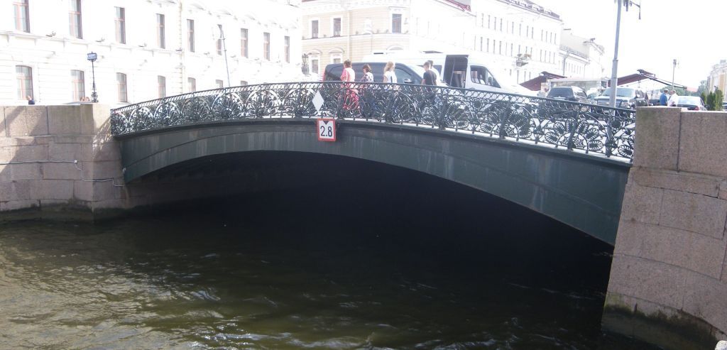 Объемно-пространственное решение:исторические габариты, местоположение и конфигурация чугунного однопролетного арочного моста, включая опоры (береговые устои). Конструктивная система:береговые устои – местоположение, габариты, конфигурация в плане (с закруглениями); основания опор – свайное; опоры из бутовой кладки; металлическая конструкция пролета с криволинейным нижним поясом, составленном из отдельных блоков-секций (тюбингов), соединенных болтами.Архитектурно-художественное решение:опоры моста облицованы блоками розового гранита (рапакиви), обработанными в технике бучардирования; исторический рисунок каменной кладки; полотно мостов со стороны фасадных арок оформлено выносным профилированным карнизом; с цельным литым металлическим ажурным ограждением из полуциркульных секций с заполнением «паутинкой», веерным изображением пальметт в овалах, над ними фриз из волют; между секциями треугольные вставки с львиными маскаронами в круглом обрамлении; по верхнему поясу фриз из колец, соединенных между собой; с наружной стороны решеткиволютообразные кронштейны, декорированные ажурными листьями; решетка ограждения фланкирована секциями глухого парапетного ограждения из блоков розового гранита рапакиви (соединенного с ограждением набережной с изгибом); тротуары выполнены из блоков розового овоидального гранита рапакиви, рисунок укладки плит; проезжая часть отделена от тротуаров перилами, состоящими из опорных столбиков и горизонтальных тяг между ними (силовое ограждение) – местоположение, габариты;табличка (две) с названием мостов на декоративной стойке – местоположение (на парапете ограждения), габариты, конфигурация; стойка – материал (металл), техника исполнения (ковка), рисунок, цвет (черный); табличка – материал (эмаль в два цвета: синий и белый); надписи – размер и первоначальный тип шрифта.