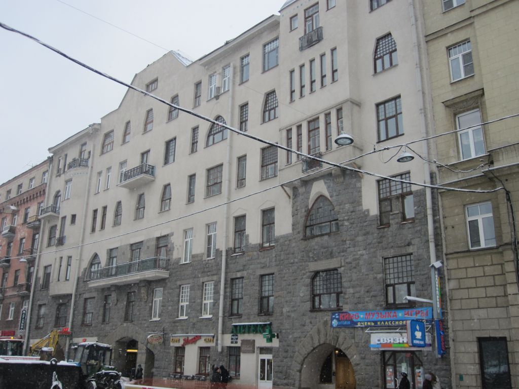Объемно-пространственное решение:исторические габариты шестиэтажного на подвалах здания, состоящего из одного лицевого и трех дворовых корпусов, образующих замкнутый двор;включая:исторические габариты и форму крыши (деревянная стропильная, скатная);воротный проезд лицевого корпуса с плоским перекрытием, открывающийся на фасад стрельчатой аркой с архивольтом, облицованным гранитными квадрами «Рваный камень» с двумя пилонами серого гранита, рельефным орнаментом из папоротниковых листьев и фигурой фантастического животного над ними;воротные проезды северного корпуса с плоским перекрытием.Конструктивная система здания:исторические наружные и внутренние кирпичные капитальные стены;исторические отметки плоских перекрытий;лестницы (шесть штук);две парадные лестницы лицевого фасада (№1 и №2);каменные;лестничные марши на косоурах;ступени лещадной плиты;ограждение лестничных маршей из вертикальных стержней, между пролетами устои со вставками геометрического кованого орнамента, с симметрично расположенными завитками;лестница № 3:каменная;лестничные марши на косоурах;ступени лещадной плиты;ограждение лестничных маршей из вертикальных стержней, между пролетами устои со вставками геометрического кованого орнамента, с симметрично расположенными завитками;черные лестницы №4, №5, №6: каменные;лестничные марши на косоурах;ступени лещадной плиты.Объемно-планировочное решение:историческое объемно-планировочное решение в габаритах капитальных стен.Архитектурно-художественное решение фасадов:в стилистике северного модерна;лицевой фасад:материал и характер фасадной поверхности: цоколь серого гранита, на уровне 1-2-го частично 3-го этажа гранитная облицовка «рваный камень», на уровне 3-6-го этажей терразитовая штукатурка;воротный проезд: створы ворот кованного черного металла, в верхней части вертикальные стержни, боковые и нижние части глухие с вставками орнамента «елочка»;два парадных входа в неглубоких лоджиях со стрельчатым завершением;габариты и конфигурация, исторический рисунок и цвет (коричневый) заполнения дверных и оконных проемов; оконные проемы (габариты, конфигурация. местоположение): на разных уровнях фасада прямоугольной формы с трапециевидным или стрельчатым завершением;щелевые;балкон центральной части фасада на уровне 3-го этажа на двух гранитных кронштейнах с мужскими маскаронами;балкон в центральной части фасада на уровне 5-го этажа с ограждением;щипец трапециевидный в центральной части фасада с прямоугольными оконными проемами;эркер (прямоугольный в плане) на уровне 4-6-го этажей с шатровым завершением;французский балкон на уровне 4-го этажа;балкон на уровне 6-го этажа;щипец треугольной формы;эркер (лучковый в плане) на уровне 3-5-го этажейфранцузский балкон на уровне 4-го этажа;орнамент из квадратных керамических плиток цвета в верхней части эркеров;балкон, венчающий эркер;балкон по крайней оси фасада на уровне 5-го этажа;венчающий карниз;дворовые фасады:дворовые фасады лицевого корпуса:материал и характер обработки фасадной поверхности: известняковый цоколь, руст 1-го этажа, штукатурка «в набрызг» на уровне 2-го этажа, терразитовая штукатурка 3-6-го этажей;габариты и конфигурация, исторический рисунок расстекловки и цвет (коричневый) заполнения оконных проемов;эркер (лучковый в плане) на уров