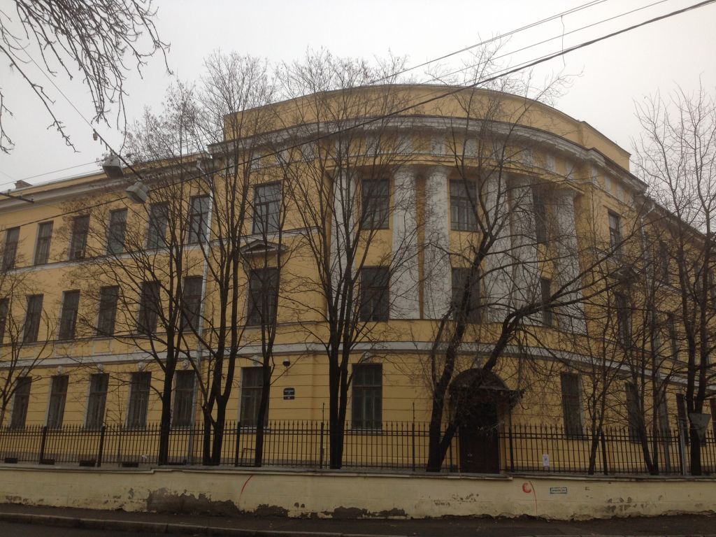 Композиционное решение: исторические габариты лицевого корпуса с двумя примыкающими дворовыми корпусами,Конструктивная система: цоколь кирпичный с облицовкой из известняковой плиты;капитальные наружные стены кирпичные, оштукатуренные; аттиковая стенка вдоль фасада лицевого корпуса; внутренние капитальные стены кирпичные; перекрытия плоские по металлическим балкам; в подвальном этаже перекрытия сводчатые по металлическим балкам (прусские своды); центральная лестница: каменная по металлическим косоурам с металлическим ограждением;полукруглый объем лестничной клетки в угловой части центрального корпуса со стороны дворового фасада; исторические габариты лицевых скатов крыши,Архитектурно-художественное решение фасадов: общее стилевое решение фасадов в неоклассическом стиле;материал отделки фасадов – штукатурка;цветовое решение фасадов – плоскость стен цвета светлой охры с белыми лепными деталями;местоположение и габариты оконных и дверных проемов на лицевых фасадах и в полукруглом объеме угловой части дворового фасада; архитектурно-декоративные элементы:1 – лицевые фасады:облицовка цоколя известняковой плитой; профилированный карниз, профилированные межэтажные тяги простого профиля; руст лицевых фасадов первого этажа; декоративные замковые камни с масками львов над окнами первого этажа; декоративные филенки под окнами второго этажа, треугольные фронтоны на кронштейнах над окнами второго этажа крайних осей;лоджия в центральной (скругленной) части здания с колоннами композитного ордера на уровне второго-третьего этажей, пояс в виде стилизованных метоп и триглифов под карнизом; полукруглая фрамуга над центральной дверью;2 – дворовые фасады: облицовка цоколя известняковой плитой; профилированный карниз, профилированные межэтажные тяги простого профиля; руст лицевых фасадов первого этажаДекоративно-художественное решение интерьеров: объемно-пространственное и планировочное решение центрального вестибюля;декоративное оформление центрального вестибюля: лепной фриз из акантовых листьев по периметру вестибюля, лепная центральная розетка, мощение пола метлахской плиткой, включая лестничные площадки