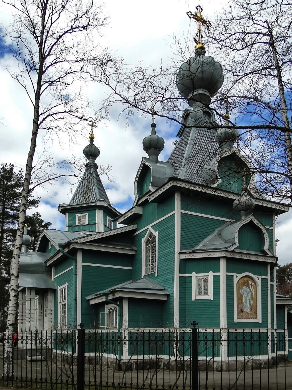 Объемно-пространственноерешение: местоположение, габаритыи конфигурация здания в плане;историческое объемно-пространственноерешение одноэтажного основного объемахрама с прилегающими объемами алтаря,притвора и трапезной, с высокимчетвериком и двухъярусной (четверикна восьмерике) одноглавой колокольней,завершенной четырехгранным шатромс луковичной главкой на барабанес крестом;габариты, конфигурация (двускатная),высотные отметки крыши основногообъема, материал покрытия (металл);габариты, конфигурация, высотныеотметки завершения алтарной частилуковичной главой четырехгранныхшатров с четырьмя килевиднымикокошниками, с пятью главками подкрестами;притвор и паперти завершены бочкойс луковичной главкой на барабане*с крестом;*луковичный купол с перехватом; трапециевидный в плане пониженныйприруб апсиды, завершенный бочкойс луковичной главкой под крестомна яблоке; материал и рисунок покрытия шатров –материал (металл), конфигурация(утюжковый лемех);кресты глав, их исторический рисунок;историческая объемно-пространственнаякомпозиция, высотные отметки основногообъема, а также шатра, конфигурацияи габариты главы луковичной формы,фундамент, наружные и внутренниеисторические стены, их материал (бревна). 2). Конструктивнаясистема: фундамент из гранитных блоков;наружные бревенчатые стены (рубленные«в лапу»);деревянные перекрытия;историческая лестница, ведущаяна колокольню – габариты, конфигурация. 3). Объемно-планировочноерешение: в габаритах наружных стен и историческихперегородок;симметричная композиция плана;в плане три смежных прямоугольникаразличной ширины: западная часть(притвор, трапезная), средняя часть –центральный четверик, восточная часть –апсида и примыкающий объемы;исторические перекрытия (конфигурация,исторические отметки перекрытий);помещения различной высоты, перекрытыесобственными кровлями. 4). Архитектурно-художественноерешение фасадов: архитектурно-художественное решениефасадов в приемах неорусского стиля:материал и характер отделки цоколя(гранит);оконные и дверные проемы –местоположение, габариты, конфигурация(с треугольным завершением);оформление оконных проемовдеревянными гладкими наличниками;исторические оконные заполнения –материал (дерево), цвет, рисунокрасстекловки;дверные заполнения – материал (дерево),конструкция (двустворчатые на папертии в притвор, одностворчатая на южномфасаде), оформление (филенчатые); западный фасад:трехчастный, центральная часть,образованная двухъярусной колокольней,выше объемов боковых приделов, притвор;по центральной оси – главный вход,оформленный стилизованным фронтоном,решенным в формах модерна;восточный фасад: северный и южный (боковые) фасадыс центрально-симметричной композицией,завершенной усеченным фронтономс круглым оконным проемомпо центральной оси. 5). Декоративно-художественнаяотделкаинтерьеров: две печи – материал (кирпич,металлическая облицовка), круглыев плане, с конусообразным завершением; дверное заполнение (при входе в зал,дверные полотна сняты с петель) –материал (дерево), конструкция(двустворчатая с остекленной фрамугой);арочный проем, ведущий в алтарь. 6). Предметыдекоративно-прикладногоискусства: иконостас двух-трехъярусный, деревянный(тонированный (морёный) дуб, резной,с трехчетвертными колоннамисо стилиз