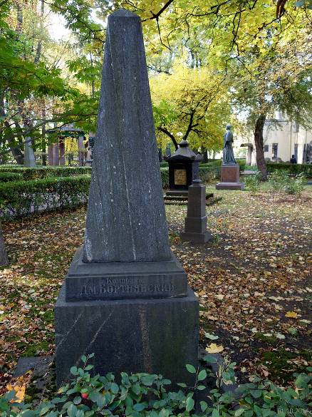 Объемно-пространственное и архитектурно-художественное решение:историческое местоположение захоронения и конфигурация надгробия; историческое решение надгробия в виде обелиска из тёмного гранита на квадратном в плане трёхступенчатом профилированном гранитном пьедестале- основании (на гранях обелиска имеются следы утраченных деталей); характер и содержание надгробных надписей.