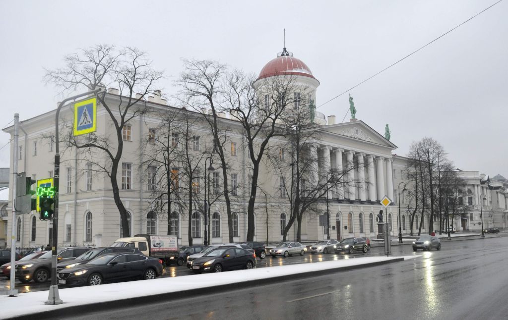 Объемно-пространственное решение:габариты и конфигурация трехэтажного прямоугольного в плане здания с центральным ризалитом в девять осей по лицевому фасаду, с тремя ризалитами по южному дворовому фасаду, купол на высоком барабане венчает центральный объем здания; конфигурация (вальмовая) и габариты крыш включая высоту конька;конфигурация и габариты купола;материал окрытия (кровельное железо), исторический колер его окраски.Конструктивная система здания: исторические конструкции:исторические наружные и внутренние кирпичные капитальные стены;исторические отметки плоских междуэтажных перекрытий;исторические лестницы:парадная лестница- двухмаршевая, с маршами по косоурам, ступени лещадной плиты с валиком, покрытие пола межэтажных площадок метлахской плиткой, рисунок типа «соты», цвет (желтый, серый, терракота);25-Н(88), пл. 87,8 кв.м.:подшивка лестничных маршей оформлена прямоугольными филенками;ограждение маршей – черного металла, литое, зооморфный рисунок; поручни – материал (дерево), конфигурация (профилированные);уплощенный цилиндрический свод над объемом лестничной клетки Л1 пом. 1-Н (64) 47,2 м.кв. оформлен прямоугольными разноформатными филенками;лестница Л2 пом. 1-Н (75) 36,1 м.кв. и Л3 пом. 1-Н (107) 35,2 м.кв. симметричные и аналогичные по конструкции и оформлению – трехмаршевые, марши на ползучих арках, межэтажные площадки на уплощенных цилиндрических сводах;ступени и межэтажные площадки лещадной плиты, ступени с валиком;ограждение маршей – черного металла, прокат, вертикальные стержни прямоугольного сечения;поручни – материал (дерево), конфигурация (профилированные);лестница Л4 пом.1-Н (90) 25,6 м.кв., Л3 пом. 1-Н (107) 35,2 м.кв. симметричные и аналогичные по конструкции и оформлению – трехмаршевые, марши на ползучих арках, межэтажные площадки на уплощенных цилиндрических сводах;ступени и межэтажные площадки лещадной плиты, ступени с валиком;ограждение маршей (до уровня 2-го этажа) – черного металла, литое, прокат, рисунок вертикальные стержни прямоугольного сечения, вдоль верхней тетивы фриз с рисунком волны растительного характера;опорные стойки литые с рисунком растительного характера;поручни – материал (дерево), конфигурация (профилированные), в завершении опорных стоек фиалы;своды:цилиндрические своды с распалубками;арочный проем с полуциркульным завершением, между помещением 1-Н(115)17,4 м.кв.и помещением 1-Н(118) 17.2 м.кв.;коробовые с распалубками:пом.1-Н(150) 215,2 м. кв. состоит из трех объемов:центральный и два симметричных боковых с северной и южной сторон;крестовый свод над центральной частью пом. 1-Н(150) 215,2 м. кв.;четыре колонны дорического ордера (две на северной, две на южной стороне зала);пом.1-Н(163) 135.8 м. кв. -коробовые своды с распалубками на подпружных арках;Объемно-планировочноерешение:историческое объемно-планировочное решение в габаритах капитальных стен, габариты помещений с художественной отделкой;Архитектурно-художественноерешение фасадов:aрхитектурно-художественное решение фасадов в стиле классицизм, исторический колер окраски (по данным натурных и архивных исследований);материал отделки цоколя: известняковая плита;материал отделки фасада – гладкая окрашенная штукатурка;обработка фасада в уровне первого этажа линейным рустом;лицевой фасад:балкон – местоположение в уровне 2-го этажа ризалита в габаритах портика;чуг
