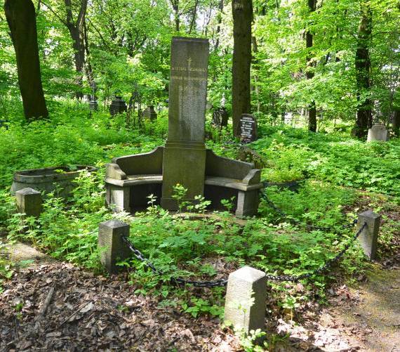 Объемно-пространственное и архитектурно-художественное решение: историческое местоположение захоронения, габариты и конфигурация надгробия (семейное захоронение); историческое художественное решение надгробия в виде архитектурной композиции из серого кованого гранита (высокая прямоугольная стела с примыкающими с двух сторон гранитными скамьями, на земляной площадке ограниченной цепями с гранитными тумбами фактуры скалы); рельефные символы, характер и содержание надгробных надписей..