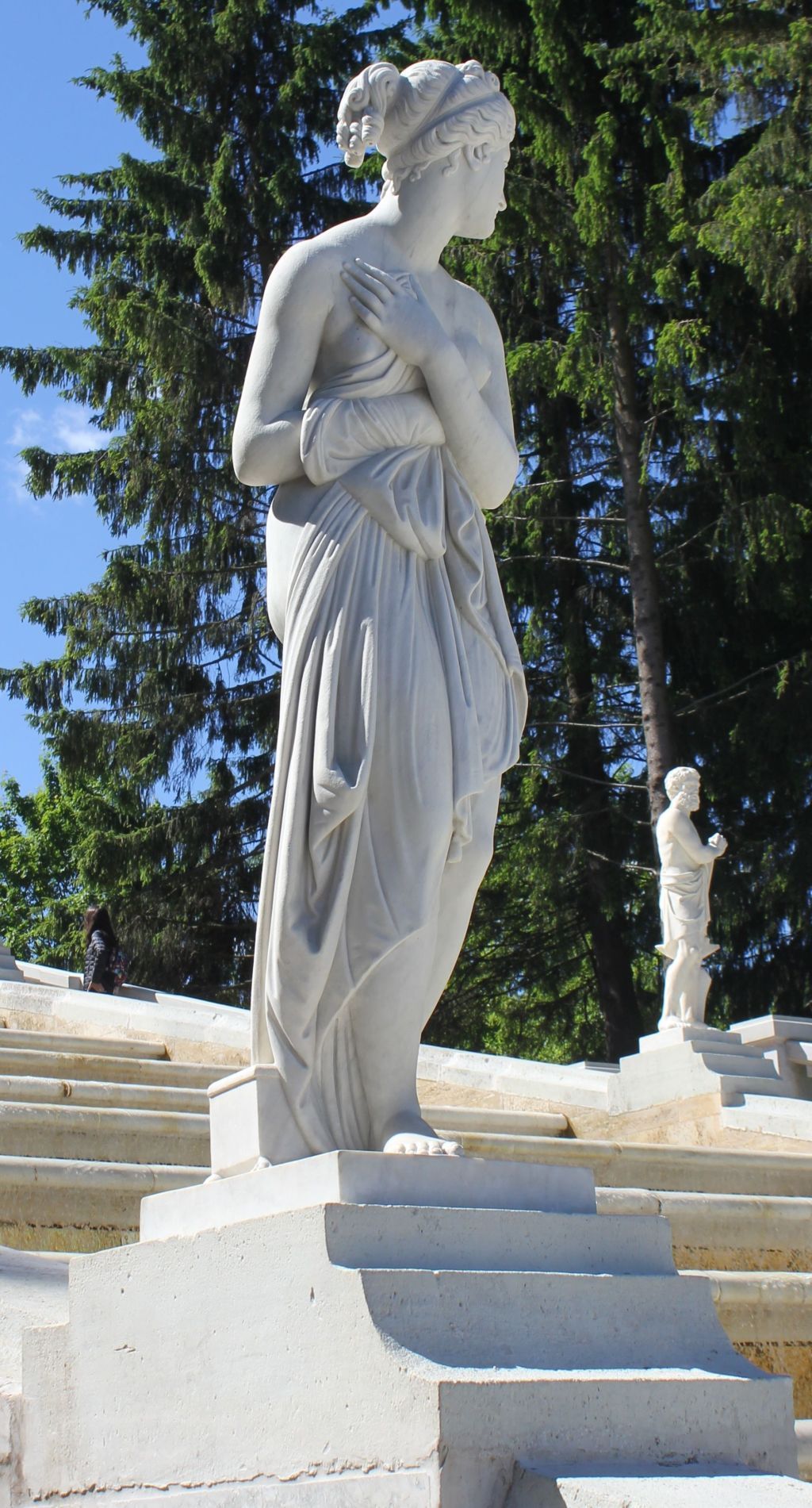 статуя «Венера Италийская» на плинте (мрамор, рубка, шлифовка), установлена на восточном парапете Марлинского каскада (место 3 сверху); женская фигура выполнена в полный рост, полуобнаженная, голова повернута к правому плечу, волосы собраны на затылке и перехвачены лентами, руками, согнутыми в локтях и скрещенными на груди, придерживает драпировку, спадающую спереди складками до основания, опирается на левую ногу, правая согнута в колене, отставлена назад, у левой ноги находиться ларец на львиных ножках, основание квадратное.