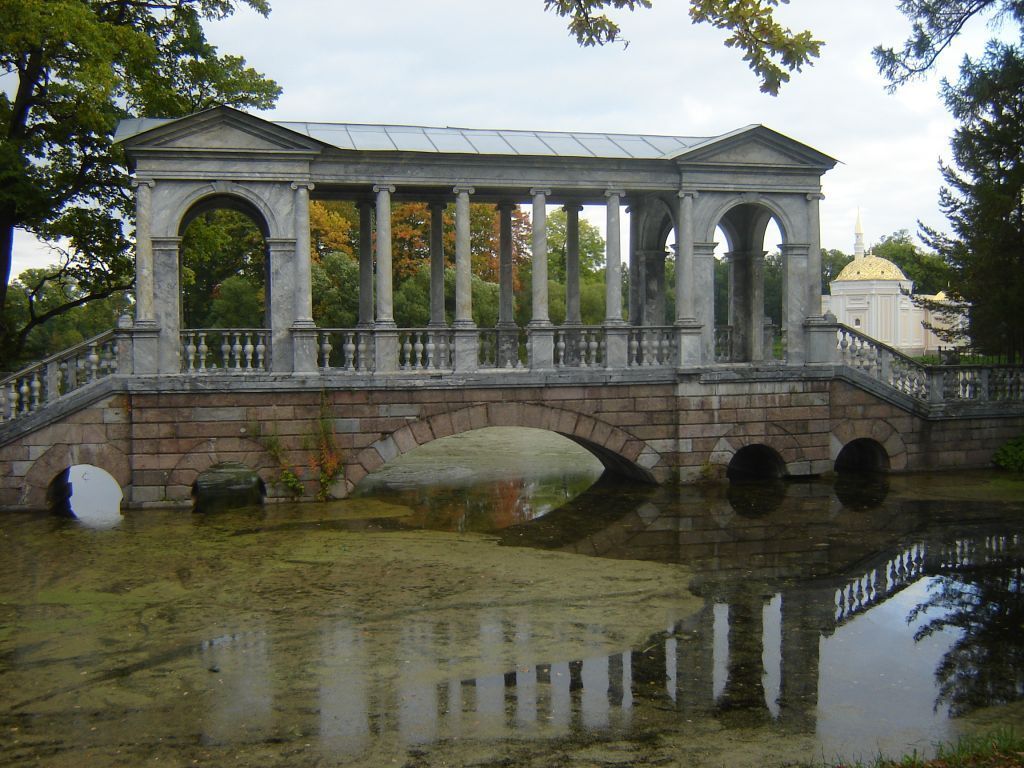 Объемно- пространственное и планировочное решение территории:местоположение: Екатерининский парк, Большой пруд, через протоку к Лебяжьим прудам.Объемно-пространственное решение:мост, с пятью пролетами, крытой колоннадой с павильонами по сторонам, двумя лестницами;габариты, конфигурация в плане;конфигурация и габариты скатной крыши, высотные отметки;Конструктивная система:опоры;арочные пролеты;колонны на тумбах (материал - мрамор);пилоны (материал – мрамор);полуциркульные арки (материал – розовый гранит);две лестницы (материал ступеней – мрамор).Архитектурно-художественное решение фасадов:ахитектурно-художественное решение в формах классицизма, облицовка фасадов и опор –рустованный розовый гранит с выделением арочных пролетов;мраморная колоннада и павильоны:облицовка пола мраморными плитами шахматного рисунка с бордюром;перильное ограждение – балюстрада из мраморных фигурных балясин;мраморные тумбы с профилировками; колонны ионического ордера;антаблемент, с гладким фризом и профилированным карнизом;арки боковых павильонов спрофилированными импостами и замковыми камнями; треугольные фронтоны с профилированными карнизами;оформление потолка – падуга с профилировками.
