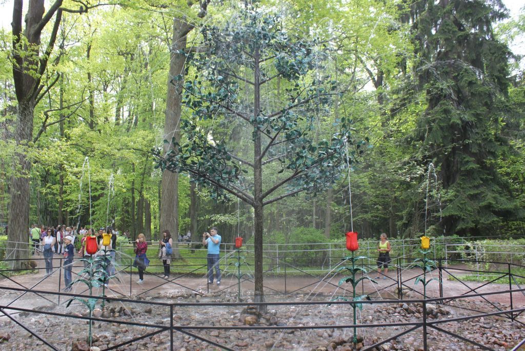 Фонтан-шутиха "Дубок" с металлическими тюльпанами и скамейками