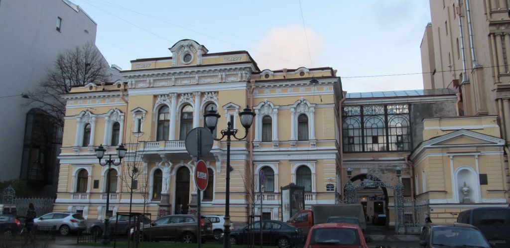 Главный домОбъемно-пространственное решение:исторические габариты и конфигурация здания, включая лицевой корпус и западный дворовый корпус;крыши (лицевой корпус и западный дворовый корпус) – исторические габариты и конфигурация (скатные), окрытие кровли (листовой металл);ризалит – количество (один), местоположение (центральная часть лицевого корпуса), конфигурация (прямоугольный в плане), габариты;аттиковые объемы – местоположение (лицевой корпус, западный дворовый корпус), конфигурация (пониженные, с лучковыми повышениями над люкарнами), габариты;центральный аттиковый объем – местоположение (над ризалитом лицевого корпуса), конфигурация (повышенный, с лучковым повышением в центральной части), габариты.Конструктивная система здания: исторические наружные и внутренние капитальные стены – местоположение, материал;междуэтажные перекрытия – местоположение;своды: тип – пологий (площадки лестниц, ведущих из парадного вестибюля в подвал, помещения 1-Н(33, 34);коробовый с распалубками, на подпружных арках (западная и восточная части парадного вестибюля, помещение 1-Н(5), ниша межэтажной площадки помещения 1-Н(58);крестовый (площадки лестниц, ведущих из парадного вестибюля в помещения 1-Н(36) и 1-Н(54);сомкнутый с распалубками (центральная часть парадного вестибюля, помещение 1-Н(58);веерный с распалубками (южная часть помещения 1-Н(57);коробовый (северная часть помещения 1-Н(57);междуэтажные перекрытия – местоположение; лестница – количество (одна), местоположение (парадный вестибюль), тип (маршевая), конструкция (межстенная), габариты, вид материала ступеней (белый мрамор);ковродержатели и стержни – вид материала (латунь), габариты;лестницы – количество (две), местоположение (парадный вестибюль), тип (маршевые), конструкция (пристенные, на сводах), габариты, вид материала ступеней (белый мрамор);ограждение – габариты, материал (латунь ?), техника исполнения (литье), рисунок (прутья с фигурными перехватами), поручень – габариты, конфигурация, форма (профиль), материал (дерево), цвет (цвет натурального дерева);лестницы – количество (две), местоположение (парадный вестибюль), тип (маршевые), конструкция (межстенные), габариты, вид материала ступеней (плиты из известняка);лестницы – количество (две), местоположение (помещения 1-Н3, 6), тип (маршевые), конструкция (межстенные), габариты, вид материала ступеней (плиты из известняка);лестница – количество (одна), местоположение (помещение 1-Н(57), тип (маршевая), конструкция (межстенная), габариты; ступени – вид материала (белый мрамор), конфигурация (нижние – с закругленными боковыми сторонами);ковродержатели и стержни – материал (латунь), габариты;парадная лестница – количество (одна), местоположение (помещение 1-Н(58), тип (трехмаршевая), конфигурация (распашная), конструкция (марши на металлических косоурах, на парных кронштейнах), вид материала ступеней (белый мрамор);кронштейны и косоуры – габариты, конфигурация, вид материала (черный металл), техника исполнения (ковка, литье), рисунок (фигурные стержни, картуши, волютообразные завитки, растительные элементы и ягоды);ограждение маршей и площадки 2-го этажа – габариты, вид материала (черный металл), техника исполнения (ковка, литье), рисунок (витые опорные стойки, декорированные на нижней ступени 1-го этажа стилизованными фигурами драконов с картушами с монограммой,