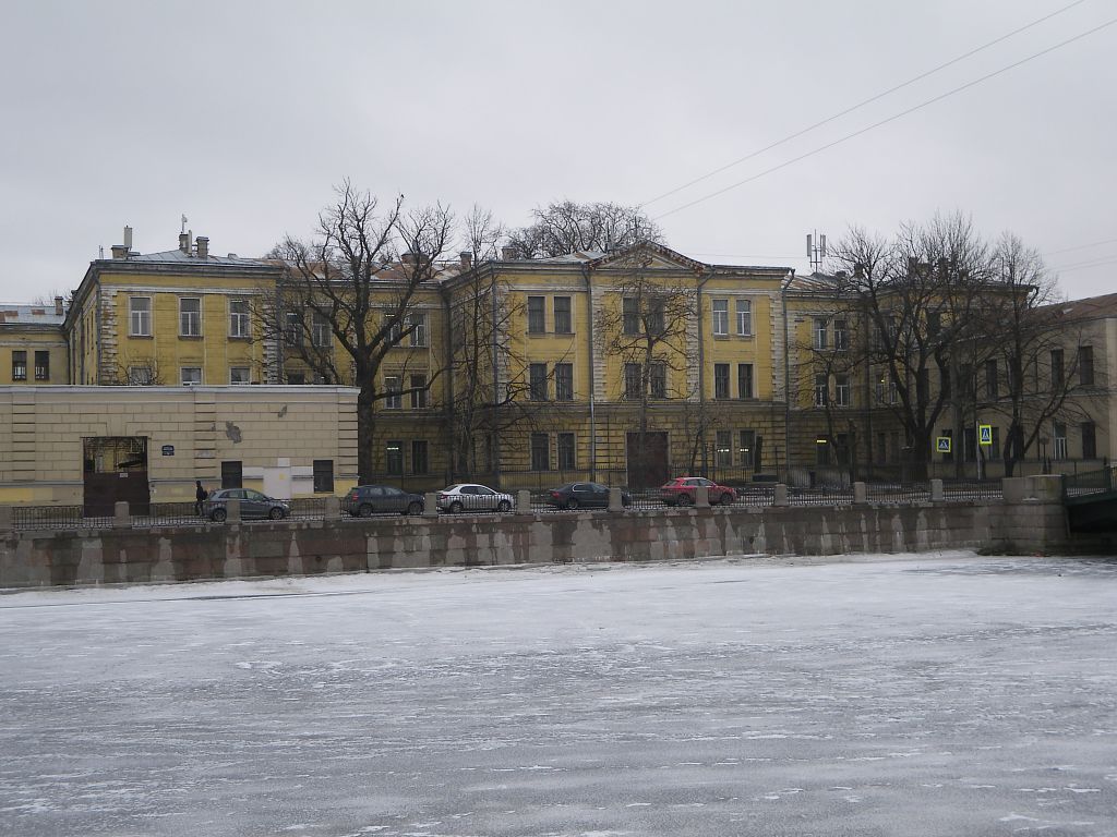 Объемно-пространственное решение:исторические габариты и конфигурация главного здания с тремя ризалитами, расположенного с отступом от красной линии застройки набережной Фонтанки; примыкающие к нему с двух сторон, 1-2-х этажные флигели, образуют курдонёр, отделенный от набережной металлической оградой с двумя воротами и калиткой; по центральной оси ограды устроена полуциркульная площадка, на которой сохранился постамент утраченного в 1918 г. бюста императора Александра II;к южному фасаду главного здания примыкают симметричные дворовые флигели, «Г»-образные в плане;объемно-планировочное решение территории Больничного сада;исторические габариты и конфигурация крыш (скатная), высотные отметки конька, материал окрытия (листовой металл).Конструктивная система:наружные и внутренние капитальные кирпичные стены;своды:коробовые с распалубками на подпружных арках – вестибюля парадной лестницы;крестовый на подпружных арках – верхней площадки парадной лестницы;крестовые на подпружных арках – тамбуров и вестибюлей служебных лестниц;коробовые с распалубками верхних площадок служебных лестниц;крестовые на подпружных арках – коридоров 1-3-го этажей;коробовые с распалубками – библиотеки;коробовые с распалубками – больничных палат 1-го этажа;парадная лестница – двухмаршевая, на косоурах, с известняковыми ступенями, с площадками в уровне 1-го, 3-го этажей, облицованными двуцветной плиткой с рисунком «соты», с бордюром;в уровне межэтажных и площадки 2-го этажа, облицованными трехцветной метлахской плиткой (белый, коричневый, желтый), с рисунком «соты», с бордюром из ромбов, с чередующимся рисунком из ромбов с выкружкой и четырехлистников;с площадками по сводам (коробовые);с металлическим литым ажурным ограждением в виде вертикальных парных стоек, декорированных сверху и снизу барочными композициями из побегов аканта; с профилированным деревянным поручнем;в уровне 1-го этажа – одинарная стойка с волютообразным кронштейном аналогичного рисунка;на поворотных частях – в виде парных стоек на звериных лапах, завершенных шишками пинии с провисающими гирляндами, декорированные растительным орнаментом;служебные лестницы – трехмаршевые, на косоурах, с известняковыми ступенями, с площадками, облицованными двухцветной метлахской плиткой (белый, серый), с рисунком «соты», с металлическим ограждением в виде вертикальных стоек с перехватами растительного рисунка сверху и снизу; с профилированным деревянным поручнем;опорные пилоны – западной части церковного зала.Объемно-планировочное решение:объемно-планировочное решение в габаритах капитальных стен, габариты помещений с архитектурно-художественной отделкой, указанных в п. 5, включая коридорную систему расположения помещений.Архитектурно-художественное решение фасадов:лицевой фасад главного здания:симметричный, на 20 световых осей, в приемах позднего классицизма;материал и характер отделки цоколя – известняк;материал и характер отделки фасада – окрашенная штукатурка (руст квадром – в уровне 1-го этажа, гладкая штукатурка, имитация руста – в уровне 2-3-го этажей);центральный ризалит с раскреповкой на две оси, увенчанной треугольным фронтоном, с выкружкой в тимпане;углы раскреповки, ризалитов центральных осей фасада декорированы рустованными лопатками (в уровне 2-3-го этажей р