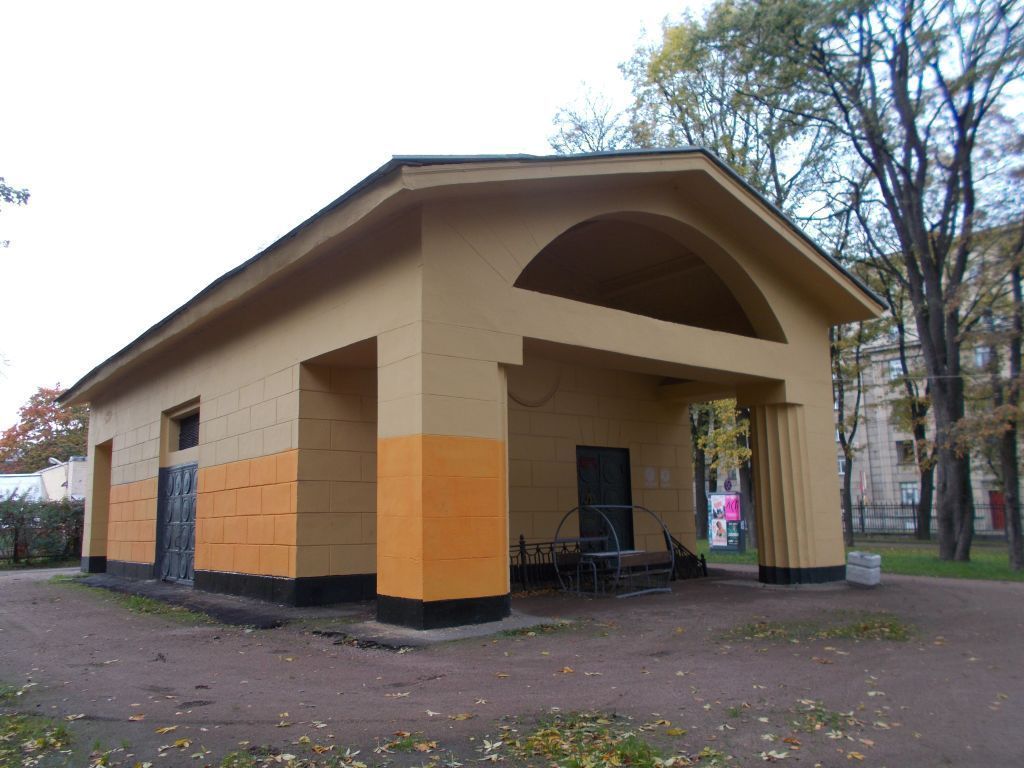 Объемно-пространственное решение: здание прямоугольное в плане с портиками на торцевых стенах, завершенное двухскатной крышей; крыша – конфигурация (двухскатная), габариты, высотные отметки крыши; материал окрытия крыши - металл. Конструктивная система здания: фундаменты; наружные и внутренние капитальные стены; пилоны, поддерживающие балку и фронтон с полуциркульным сквозным проемом; отметки перекрытий. Объемно-планировочное решение: объемно-планировочное решение в габаритах капитальных стен; Архитектурно-художественное решение фасадов: архитектурно-художественное решение фасадов в формах сталинского ампира; материал и характер фасадной поверхности – гладкая штукатурка, руст; дверные и вентиляционный проемы – местоположение, конфигурация и габариты; решетки ограждения перед дверными проемами на торцевых фасадах (материал – металл, рисунок ограждения); цоколь и отмостка, облицованные гранитом; дверные заполнения металлические, декорированные круглыми медальонами с круглыми вставками в центре; треугольные фронтоны на торцах со сквозными полуциркульными проемами; круглые лепные медальоны на торцевых стенах; ниша на южном фасаде с дверным и вентиляционным проемами; пилоны с одной скругленной стороной с каннелюрами; широкие свесы крыши.