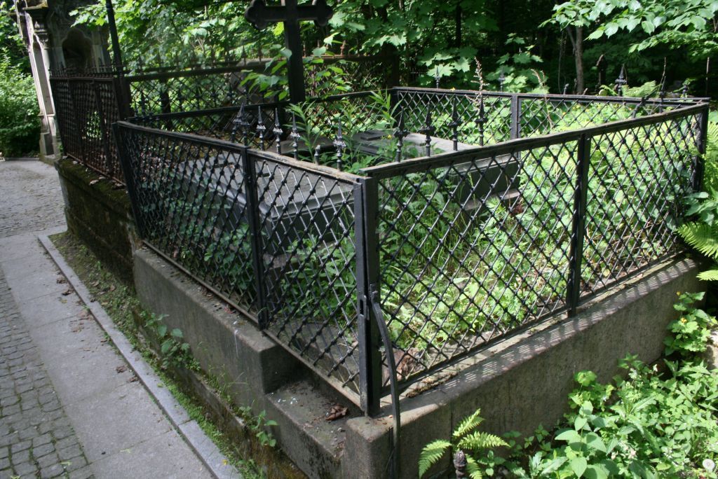 местоположение, габариты и конфигурация участка;захоронения в границах территории участка;художественное решение надгробия (саркофаг внутри высокого поребрика), вид материала (естественный камень), историческое ограждение – вид материала (металл), характер и содержание надгробной надписи.