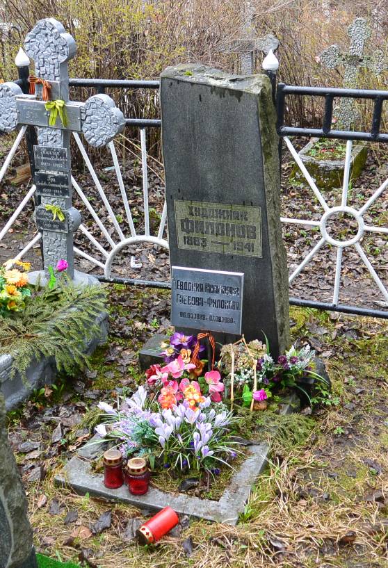 Объемно-пространственное и планировочное решение территории: историческое местоположение в центральной части Серафимовского кладбища в западной части Коммунистической площадки, конфигурация участка семейного захоронения (№ 16 на схеме); захоронения в границах участка. Объемно-пространственное и архитектурно-художественное решениеобъёмно-пространственное решение надгробия в виде прямоугольной в плане вертикально поставленной стелы-скалы из тёмно-серого гранита с полированной лицевой поверхностью на прямоугольном в плане постаменте, к которому примыкает цветник, ограниченныый бетонным поребриком (надгробие расположено на земляной площадке, на лицевой поверхности стелы вырублены рельефные шрифтовые литеры на фоне кованой фактуры); характер и содержание надгробных надписей.