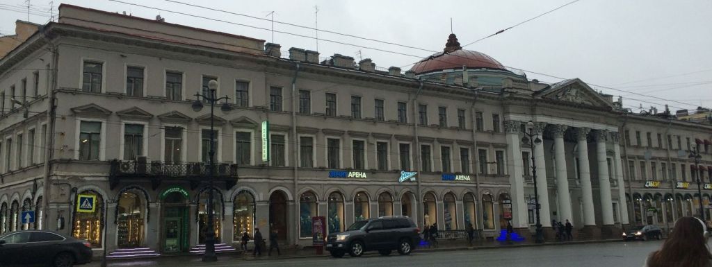 Объемно-пространственное и планировочное решение территории: местоположение и градостроительные характеристики здания, его роль в композиционно-планировочной структуре квартала и панораме Невского проспекта; замкнутый внутренний двор – габариты. 2 Объемно-пространственное решение: С-образный в плане трехэтажный, на подвале лицевой корпус и прямоугольный в плане, трехэтажный дворовый корпус со скругленными углами, соединенные двумя перемычками с арочными нишами с распалубками в уровне 1-го этажа; крыша частей лицевого корпуса, выходящих на Невский пр., и Большую Конюшенную ул.: исторические конфигурация, габариты, в том числе высотные отметки коньков и карнизов; крыша части лицевого корпуса, выходящая на наб. реки Мойки – существующие высотные отметки*; * чердачный этаж приспособлен под мансарду в начале XXI века ротонда (бывшая церковь), перекрытая куполом со шпилем, ее исторические местоположение (центральная часть южного дворового фасада лицевого корпуса), конфигурация (полуциркульная в плане), габариты; купол ротонды, его исторические конфигурация (полусферический), габариты, материал окрытия (листовой металл)*;* крест, венчавший купол, утрачен крыша дворового корпуса, ее исторические конфигурация (односкатная), габариты; ризалит в пять световых осей, оформленный в виде четырехколонного портика, завершенный треугольным фронтоном, его исторические местоположение (центральная часть лицевого фасада по Невскому пр.), конфигурация (прямоугольный в плане, уплощенный); две раскреповки в шесть световых осей, завершенные аттиковыми стенками, их исторические местоположение (восточная и западная части лицевого фасада по Невскому пр.), конфигурация; два воротных проезда – исторические местоположение (лицевого фасада по наб. р. Мойки и Большой Конюшенной ул.), конфигурация (с завершением в виде трехцентровой арки), габариты.* * исторические заполнения воротных проездов не сохранились 3Конструктивная система: исторические наружные капитальные стены; исторические внутренние стены, их местоположение, материал (кирпич); междуэтажные перекрытия; своды, в том числе коробовые, коробовые на подпружных арках, коробовые с распалубками, коробовые с распалубками на подпружных арках, ползучие; арочные галереи, их местоположение (1 й этаж), габариты и конфигурация арок; крыльца с гранитными ступенями, их исторические местоположение (лицевой фасад по Невскому пр.), габариты, конфигурация; межэтажные трехмаршевые лестницы с известняковыми ступенями*, на ползучих сводах, с коваными и литыми ограждениями, с деревянными поручнями, их исторические габариты, местоположение (часть лицевого корпуса, выходящая на Невский пр.), конфигурация; исторический рисунок ограждения (в виде стрельчатых арок, с металлическими сферами у поворотных стоек); *ступени восточной лестницы облицованы белым мрамором известняковые* одномаршевые лестницы, их исторические габариты, местоположение (тамбуры лицевого фасада по Невскому пр.), конфигурация; * часть ступеней облицована современными материалами парадная распашная лестница по ползучим сводам с известняковыми ступенями, кованым ограждением с литыми стойками, с деревянными поручнями – ее исторические габариты, местоположение (центральный объем лицевого корпуса, выходящий на Невский пр.), конфигурация; историч
