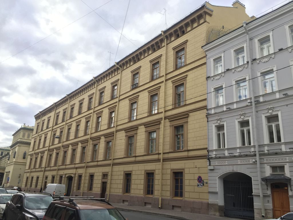 Объемно-пространственноерешение:местоположение, габариты, конфигурация четырехэтажного здания на полуподвалах;исторические габариты, конфигурация (скатная) крыши; материал кровли - металл;высотные отметки коньков;габариты, конфигурация, материал и местоположение дымовых труб;Архитектурно-художественное решение фасадов:идентичное решение юго-западного и юго-восточного лицевых фасадов в стиле классицизм; 13 световых осей;оконные и дверные проемы – местоположение, габариты, форма (прямоугольные);воротный проезд – историческое местоположение, конфигурация (арочная), габариты.вид материала и характер отделки цоколя – гранитные блоки;вид материала и характер отделки фасада – штукатурка;1-й этаж прямоугольный руст; 2-4 этажи – греческий руст;плоские фризы между 1 и 2, 2 и 3, 3 и 4 этажами;широкий профилированный венчающий карниз на кронштейнах; профилированные филенки в метопах;исторический рисунок расстекловки оконных проемов на 8 стекол;исторический материал (дерево) и цвет (охра) столярных заполнений;рамочные профилированные наличники окон 1 этажа;рамочные профилированные наличники, плоские пилястры, поддерживающие прямоугольный сандрик с широким профилированным карнизом окон 2 этажа;рамочные профилированные наличники с расширенной верхней частью окон 3 этажа;дворовые фасады:оконные и дверные проемы – местоположение, габариты, форма (прямоугольные);воротные проезды дворового корпуса – историческое местоположение, конфигурация (лучковая), габариты.вид материала и характер отделки цоколя – известняк;вид материала и характер отделки фасада – гладкая штукатурка;окраска фасадов в два цвета – желтые стены с выделением архитектурных деталей белым цветом;исторический рисунок расстекловки оконных проемов на 3 стекла;исторический цвет (белый) столярных заполнений;рамочные профилированные наличники вокруг окон и ниш;рамочные профилированные наличники, поддерживающие прямоугольный сандрик с широким профилированным карнизом окон 2 этажа дворового корпуса;балясины под окнами 2 этажа дворового корпуса;плоские фризы между 1 и 2, 2 и 3, 3 и 4 этажами;широкий профилированный венчающий карниз;исторические наружные и внутренние кирпичные капитальные стены ( материал – кирпич);междуэтажные перекрытия – высотная отметка; своды подвального этажа – материал (кирпич), конфигурация (коробовые с распалубками);лестница юго-западного корпуса:местоположение, габариты, тип (маршевая), конструкция (на опорных стенках), междуэтажные площадки на сводах, материал (лещадная плита), профиль ступеней (с валиком);сводчатые перекрытия 1-4 этажей;исторические лестницы:южная лестница юго-восточного корпуса:местоположение, габариты, тип (маршевая), конструкция (на косоурах), материал (лещадная плита), профиль ступеней (с валиком);ограждение: материал (металл), рисунок (столбики со стилизованным растительным орнаментом в верхней и нижней части);северная лестница юго-восточного корпуса:местоположение, габариты, тип (маршевая), конструкция (на косоурах), материал (лещадная плита), профиль ступеней (с валиком);ограждение: материал (металл), рисунок (столбики со стилизованным растительным орнаментом в верхней и нижней части);историческое объемно-планировочное решение в габаритах капитальных стен;профилированные штукатурные тяги;покрытие пола в коридорах 