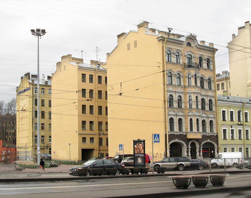 Объемно-пространственное решение:исторические габариты и конфигурация«п – образного» в плане пяти-шести этажного здания;два воротных проезда лицевого и дворового корпусов: местоположение, конфигурация (прямоугольные в плане, с трехцентровой и прямой перемычками), габариты;историческая конфигурация, габариты, высотные отметки крыши здания (двухскатная).Конструктивная система: наружные и внутренние капитальные стены (кирпич);исторические отметки междуэтажных перекрытий;своды перекрытий (в том числе – коробовые своды с распалубками, перекрывающие воротный проезд);исторические лестницы: лестничные клетки и вестибюли, их объемно-планировочное решение в том числе:парадная лестница, расположенная в восточной части здания (вход организован со стороны лицевого фасада): двухмаршевая, марши на косоурах, ступени выполнены из лещадной плиты;кованое ограждение выполнено в виде вертикальных стоек, декорированных стилизованными растительными элементами под деревянным профилированным поручнем;средистенный переход в три ступени из лещадной плиты между уровнями вестибюля;служебная лестница, расположенная в центральной части здания (вход организован со стороны южного дворового фасада): двухмаршевая, на косоурах, площадки на прусских сводах, ступени выполнены из лещадной плиты;металлическое ограждение выполнено в виде вертикальных витых стоек, с горизонтальными перехватами, под деревянным профилированным поручнем.Объемно-планировочное решение:историческое объемно – планировочное решение в габаритах капитальных стен.Архитектурно-художественное решение:архитектурно-художественное решение лицевого фасада в стилистике поздней эклектики с использованием элементов древнерусской архитектуры;лицевой фасад в пять световых осей расположен по красной линии застройки Лиговского проспекта, симметричен;материал и характер отделки лицевого фасада (по Лиговскому пр.):материал отдели цоколя: известняк;материал отделки первого этажа – колотый красный гранит, в уровне второго-пятого этажей лицевой кирпич;трапециевидный в плане эркер, расположенный по центральной оси фасада в уровне второго-четвертого этажей, завершен балконом в уровне пятого этажа;местоположение, габариты проема воротного проезда, расположенного по первой – второй световым осям лицевого фасада с трехцентровой перемычкой;килевидный профилированный архивольт, оформляющий проем, пяты которого опираются на балясины с известняковыми базами;двухстворчатые металлические ворота с фигурным завершением в арочном проеме, с калиткой в правой створке, выполнены в виде ажурной решетки с растительным декором;оформление воротного проезда:профилированные тяги, нервюры, профилированный карниз, лопатки на стенах;местоположение, габариты оконного проема с трехцентровой перемычкой, расположенный по четвертой-пятой световым осям лицевого фасада;килевидный профилированный архивольт, оформляющий оконный проем, пяты которого опираются на балясины с известняковыми базами;резная деревянная пятичастная остекленная фрамуга с орнаментом: материал (дерево), исторический рисунок расстекловки;дверной проем с полуциркульной перемычкой, ведущий в вестибюль парадной лестницы, расположенный по центральной оси фасада: габариты, местоположение, профилированный архивольт, ба