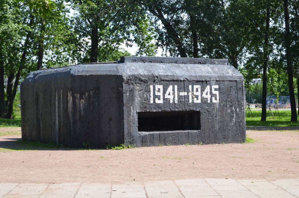 •Объемно-пространственное и объемно-планировочное решение территории:местоположение границ территории; планировочная система регулярного типа;элементы планировочной структуры: приподнятая фигурная мощеная площадка с постаментом с танком у западного края площадки, обсаженная голубыми елями с декоративными вазонами по краям, ведущая от нее на восток мощеная дорожка, расположенные к востоку набивная площадка, обложенная бетонными плитами, мощеная площадка со стелой и декоративными вазонами по краям площадок. Ландшафтные группы и массивы деревьев: Посадки голубых елей по границе площадки с танком;•Монумент «Танк»: танк «КВ-85» на прямоугольном постаменте из гранитных блоков с наклонной площадкой и мемориальной доской на лицевой стороне постамента постамент танка – блоки гранита, с расшивкой швов свинцом; на лицевой стороне постамента мемориальная доска; на доске выбито изображение пятиконечной звезды и текст: «тяжелый танк КВ-85 создан на Кировском заводе. Участвовал в боях в годы Великой Отечественной Войны 1941-1945 гг.»;•Монумент «Дот»: железобетонный Дот неправильной формы, выкрашенный в черной цвет с белыми цифрами «1941-1945» нанесенными над лицевой амбразурой.•Монумент «Стела»:прямоугольная стела из четырех бетонных блоков, на бетонном основании с плитой полированного гранита в завершении; на лицевой стороне стелы выбито и тонировано изображение пятиконечной звезды и мемориальная надпись: «В час смертельной опасности, когда немецко-фашистские войска рвались в город Ленина, мужественные ленинградцы под артиллерийскими обстрелами и авиационными бомбёжками вместе с военными строителями создали непреодолимую оборону с долговременными огневыми точками. Здесь оборонялись части истребительно-противотанковой артиллерии 42 армии».