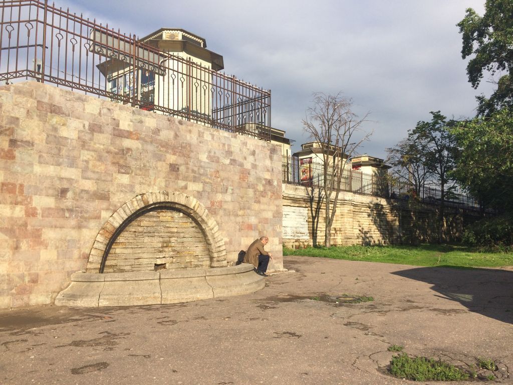 Подпорная стенка Императорской платформы с двумя лестницами и фонтаном