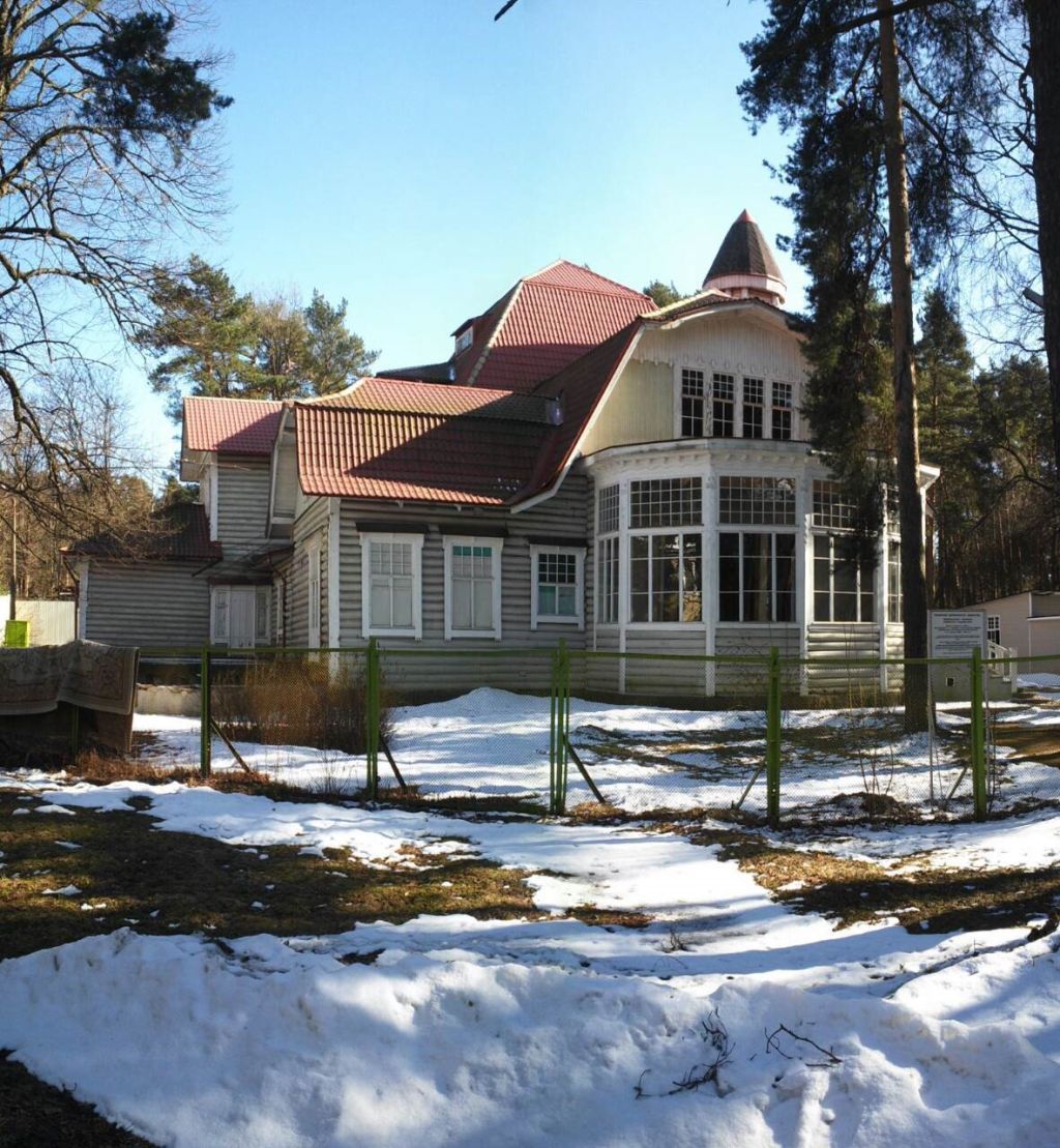 Объемно-пространственное и планировочное решение территории:Местоположение здания в границах территории объекта культурногонаследия.Объемно-пространственное решение:объёмно-пространственное решениедвухэтажного здания, включая семигранную веранду со стороны северо-западного фасада, открытое крыльцо, завершённое балконом, со стороны юго-западного фасада, три балкона в уровне второго этажа со стороны юго-восточного фасада, четырёхгранную башню с балконом и шатровым завершением, открытую террасу со стороны северо-восточного фасада,габариты и конфигурация крыши, включая слуховые окна, высотные отметки конька кровли;исторический материал окрытия крыши (черепица).Конструктивная система здания:Капитальные стены - материал (дерево), местоположение перекрытия здания, местоположение, габариты иконструкция двух лестниц;материал ступеней (дерево), деревянное ограждение лестницы, поручень -материал (дерево), профиль, в уровне второй ступени квадратный в сечении деревянный пьедестал со стилизованной базой и капителью:материал ступеней (дерево), деревянное ограждение лестницы. поручень-материал (дерево).Объемно-планировочное решение:Северо-западный фасад:материал фасадной поверхности: круглые в сечении брёвна сруба, обшивка вагонкой поля щипца, вертикальные накладные резные доски, закрывающие стык брёвен сруба: цоколь из гранитных блоков: местоположение. габариты нконфигурация (прямоугольная) оконных проёмов:историческое заполнение оконных проемов: материал (дерево), рисунок, цвет:оформление оконных проёмов: деревянные наличники, стилизованные сандрики на фигурных деревянных кронштейнах.венчающий карниз семигранной веранды со стилизованными деревянными дентикулами, фриз оформленный волнообразной композицией:свес кровли на деревянных кронштейнах;лестница в западной части веранды: материал (бетон, кирпич), ограждение лестницы: материал (дерево), рисунок (балясины);Юго-западный фасад:материал фасадной поверхности: круглые в сечении брёвна сруба, обшивка вагонкой поля щипцов,вертикальные накладные резные доски, закрывающие стык брёвен сруба: цоколь из гранитных блоков: местоположение, габариты иконфигурация (прямоугольная, с полуциркульным завершением.шестигранная) оконных проёмов: историческое заполнение оконных проемов: материал (дерево), рисунок. цвет:оформление оконных проёмов: деревянные наличники, стилизованные сандрики на фигурных деревянных кронштейнах.свес кровли на деревянных кронштейнах:две цветочницы с деревянным ограждением в уровне второго этажа:балкон четырёхгранной башни с деревянным ограждением(местоположение, конфигурация);открытое крыльцо с двумя лестницами (материал бетон, кирпич) с деревянным ограждением и фигурными стойками, завершённое балконом с деревянным ограждением, поддерживаемым восемью сдвоенными и двумя одинарными деревянными колоннами, оформленными в верхней трети каннелюрами и бусинами;Юго-восточный фасад:материал фасадной поверхности:круглые в сечении брёвна сруба.вертикальные накладные резные доски.закрывающие стык брёвен сруба, цокольиз гранитных блоков:местоположение. габариты иконфигурация (прямоугольная) оконныхпроёмов:историческое заполнение оконныхпроемов: материал (дерево), рисунок.цвет:оформление оконных проёмов:деревянные наличники, стилизованныес