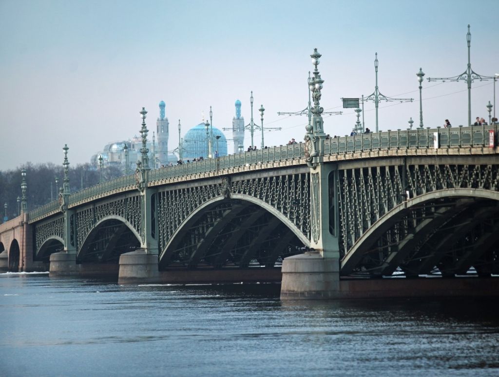 Объемно- планировочное и пространственное решение: исторические габариты, местоположение и конфигурация моста с девятью постоянными пролетами и одним разводным, включая опоры;Конструктивная система:средняя металлическая пятипролетная часть моста (местоположение, конфигурация, габариты): сочетание консольно-арочных и консольно-балочных ферм;металлический пролёт – трехшарнирные арочные клепанные решетчатые фермы с консолями, выступающими в противоположные стороны за пределы среднего пролёта;боковые пролёты средней (пятипролетной) части моста – фермы консольно-балочной системы;разводной пролет (местоположение, конфигурация, габариты) – однокрылый металлический цельносварный пролет;правый берег - трехпролетная каменная аркада (местоположение, конфигурация, габариты) бесшарнирные каменные своды на свайном основании, облицовка, парапет - розовый гранит;левый берег – стационарный пролёт (местоположение, конфигурация, габариты) со сталежелезобетонным пролетным строением: железобетонные балки — фальшарки коробчатого сечения с криволинейным очертанием нижнего пояса, имитирующем арочное каменное пролетное строение, облицовка - розовый гранит;левобережный устой –местоположение, конфигурация (прямоугольный в плане), габариты, материал облицовки (розовый гранит);правобережный устой –местоположение, конфигурация (прямоугольный в плане), габариты, материал облицовки (розовый гранит);быки – местоположение, конфигурация (включая ледорезы с верховой стороны), габариты, материал облицовки (гранитное основание, металлический каркас), декоративное оформление;пешеходные спуски с левой стороны с внешними стенками – местоположение, конфигурация (включая конфигурацию гранитных блоков парапета), габариты (включая габариты лестниц, гранитных блоков парапета, вертикальные отметки тротуара моста и нижних площадок спусков), материал ступеней и настила площадок спусков (розовый гранит), габариты.Архитектурно-художественное решение: перильное ограждение моста (местоположение, конфигурация, габариты, рисунок звеньев): на постоянных пролетах чугунное перильное ограждение индивидуального художественного литья, на разводном пролёте — металлические решетки;на левобережном пролёте и каменной аркаде перильное ограждение завершается гранитными парапетами и обелисками со стороны Суворовской площади (габариты, местоположение, конфигурация, материал (гранит), декор: ростры кораблей из патинированной бронзы, поддерживающие круглые светильники, фигуры двуглавых орлов с распростертыми крыльями; две мемориальные доски бронзовые;16 больших канделябров (с тремя плафонами) и 24 малых канделябра (с одним плафоном) местоположение, габариты, конфигурация, декоративное оформление;опоры контактной сети: местоположение, габариты, конфигурация, декоративное оформление;