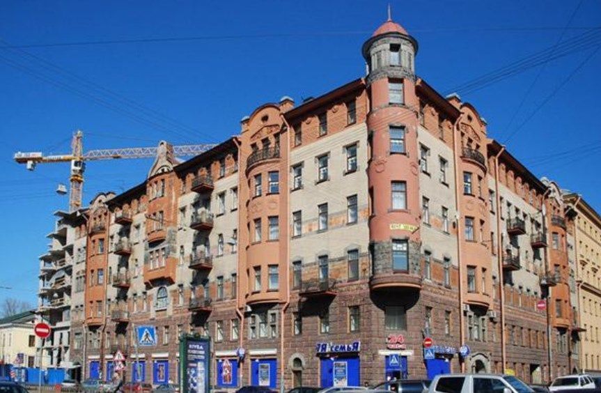 Объемно-пространственное решение:местоположение, габариты и конфигурация углового здания, с лицевыми корпусами, расположенными по красным линиям Захарьевской улицы и проспекта Чернышевского; объемно-планировочное решение дворового пространства:два лицевых и два дворовых корпуса, образующих замкнутый двор;башня над угловым эркером, увенчанная куполом со шпилем;воротный проезд лицевого корпуса по Захарьевской ул. с двустворчатыми коваными металлическими воротами геометрического рисунка; габариты, высотные отметки и конфигурация крыш (скатная), материал кровли (листовой металл).Конструктивная система здания:исторические наружные и внутренние кирпичные капитальные стены;исторические отметки междуэтажных перекрытий;исторические лестницы – местоположение, габариты, элементы конструкции, включая ограждение:парадная лестница Л-1 (со стороны Захарьевской ул.) – кованое ограждение в стиле модерн с цветами и извивающимися листьями; парадные лестницы Л-2 (со стороны Захарьевской ул.) и Л-6 (со стороны просп. Чернышевского) – кованое ограждение в стиле модерн с вертикальными стойками, S-образными завитками и провисающими гирляндами;дворовые лестницы Л-1 (двор), Л3 и Л-4 – кованые ограждения лестничных маршей из вертикальных стоек прямоугольного сечения с тетивой; средистенная лестница вестибюля парадной лестницы Л-1 на штукатурных устоях, ступени – известняк; средистенные лестницы вестибюлей Л-2 и Л6.Архитектурно-художественное решение фасадов:фасады здания в характере северного модерна с элементами неоклассицизма, с угловым эркером, увенчанным башенкой; с тремя эркерами по пр. Чернышевского; с двумя эркерами по Захарьевской улице; в завершении эркеров – фигурные аттики с люкарнами;материал и характер обработки фасадной поверхности:цоколь, облицованный гранитом;оформление фасадных стен в уровне 1-2 этажей колотым камнем с рустом;стены в уровне 3-го и 6-го этажей – штукатурка, в уровне 4-5 этажей – облицовочный кирпич; историческое цветовое решение:сочетание серого гранита, красного колотого природного камня, светлого-серого облицовочного кирпича и светло-красной штукатурки;дверные проемы:габариты, конфигурация (прямоугольная, со срезанными углами; с арочным завершением), местоположение; исторические заполнения дверных проемов:материал (дерево);фрамуги со срезанными углами и с арочным завершением;двери (одностворчатые, двухстворчатые и трехстворчатые) с филенками с геометрическим рисунком и с растительным декором;оформление дверных проемов серым колотым и гладким гранитом;оконные проемы:габариты, конфигурация (прямоугольная; со срезанными верхними углами), местоположение;исторические заполнения оконных проемов:материал (дерево); исторический рисунок (с мелкой расстекловкой);оформление оконных проемов наличниками и вставками серого гранита (гладкого и колотого);дверные проемы балконов:габариты, конфигурация (прямоугольная), местоположение;исторические заполнения дверных проемов балконов:материал (дерево); исторический рисунок (с мелкой расстекловкой);балконы (в т. ч. над эркерами):кованые ограждения на кованых стойках; рисунок ограждений растительно-геометрического характера (венки, гирлянды, ветви, прямоугольники);12 балконов (в т. ч. 2 над эркерами) на фасаде по пр. Чернышевского;7 балконов (в т. ч. 2 над эркерами) н