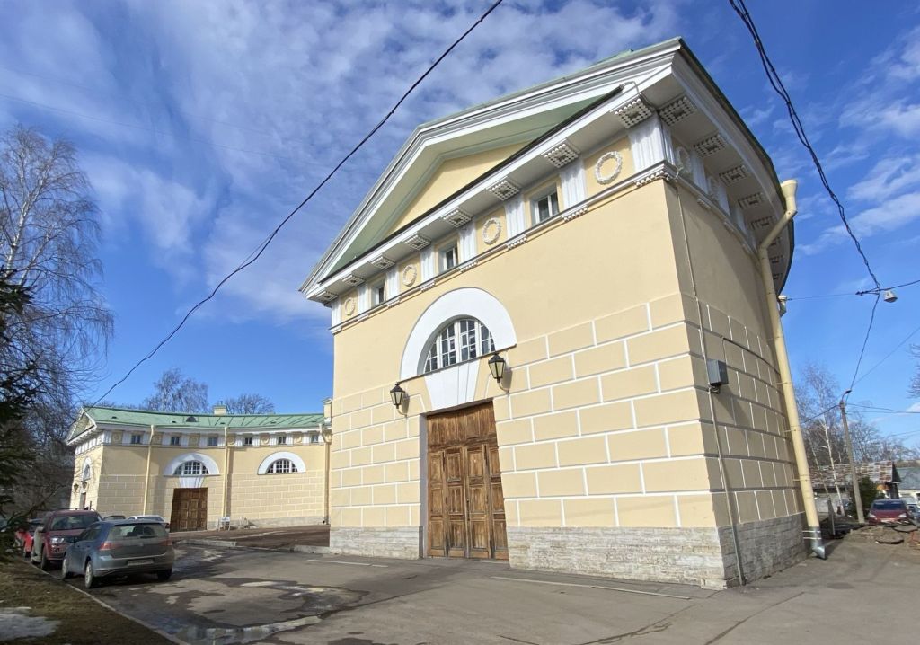 Объемно-пространственная и планировочная композиция здания: габариты и конфигурация С-образного в плане трехэтажного здания с выступающим объемом на северном фасаде; конфигурация и габариты двускатной крыши со слуховыми окнами, четырьмя световыми фонарями и восемью дымовыми трубами; объемно-планировочное решение в габаритах внешних и внутренних капитальных стен и исторических перегородок.Строительные конструкции: наружные и внутренние капитальные стены, исторические отметки перекрытий; тип сводов, в том числе радиальные в полуциркульной части здания, конхи.Конструкция северной и восточной лестниц (помещения 2-Н (1,2, 10), 3-Н (I, 14, 18) на косоурах, конструкция лестницы (помещения 1-Н (6, 14, 28)по ползучим кирпичным сводам; ограждение лестниц, его рисунок и техника исполнения (ковка).Строительные материалы: материал и характер отделки фасадной поверхности - гладкая штукатурка, кирпичный руст, цоколя - известняковые плиты; материал наружных и внутренних капитальных стен - кирпич, своды кирпичные по металлическим балкам; материал ступеней лестниц -известняковые лещадные плиты, материал ограждения - металл; материал дверных и оконных заполнений - дерево.Композиция и архитектурно-художественное оформление фасадов: местоположение, конфигурация и габариты оконных, дверных и воротных проемов (прямоугольные, полуциркульные, трапециевидные, с лучковым завершением); веерные замковые камни воротных и дверных проемов,дверные заполнения четырехстворчатые, глухие; филенчатые архивольты полуциркульных оконных проемов исторический рисунок оконных заполнений.Два треугольных фронтона со стороны юго-восточного фасада, треугольный фронтон со стороны северо-западного фасада; антаблемент с профилированным архитравом, фризом с триглифами с гуттами и метопами с венками, с прямоугольными оконными проемами и выносным профилированным карнизом, украшенным сухариками с гутами; световые фонари со щипцовыми завершениями и оконными проемами, оформленными наличниками с полотенцами.Пространственно-планировочная структура и элементы архитектурного оформления интерьеров здания: ниши с полуциркульным завершением и кессонированными конхами в помещении 1-Н (8, 9).