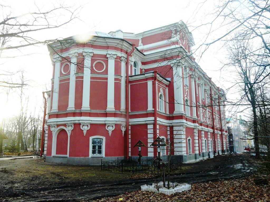 1Объемно-пространственноерешение:исторические* габариты и конфигурация прямоугольного в плане здания с примыкающим с северо-востока пятигранным объемом апсиды, завершенным низким куполом и двумя примыкающими к апсиде и центральному объему двумя прямоугольными в плане боковыми объемами; исторические конфигурация и габариты крыш; исторический материал окрытия (металл);исторические кресты - местоположение, габариты и конфигурация, материал и характер отделки.* здесь и далее под историческим понимается облик памятника по состоянию на 1860-е гг. (проект А.М. Горностаева).2Конструктивная система: исторические капитальные стены (кирпичные);колонны и столбы 1 и 2 этажа;исторические междуэтажные перекрытия, в том числе сводчатые (крестовые) на подпружных арках первого этажа;историческая междуэтажная средистенная лестница с известняковыми ступенями.3Объемно-планировочноерешение:историческое объемно-планировочное решение в габаритах капитальных стен.4Архитектурно-художественноерешение фасадов:архитектурно-художественное решение в приемах необарокко:исторический материал отделки цоколя – гранитные блоки, известняк;материал и характер отделки фасада – гладкая штукатурка;историческое местоположение, габариты и конфигурация дверных и оконных проемов;исторический материал (дерево), цвет и рисунок расстекловки оконных и дверных заполнений;исторические внешние гранитные подоконные доски; исторический гранитный портал дверного проема по юго-восточному фасаду с площадкой, двумя ионическими колоннами, верхняя часть портала имеет профилированные тяги и венчающий профилированный карниз с волютообразными завитками; портал завершает гранитный крест;юго-восточный и северо-западный фасады:фигурные профилированные наличники оконных проемов первого этажа со стилизованными замковыми камнями;фигурные профилированные наличники оконных проемов второго этажа с лепными вставками растительного орнамента в нижней и верхней части (с волютообразными завитками и рокайлями); пилястры с лепными капителями, с рустованным основанием в уровне первого этажа, декорированным лепной вставкой растительного характера;подоконная и междуэтажные профилированные тяги;венчающий профилированный карниз с раскреповкой;ряд прямоугольных филенок со скругленными углами и вписанными кругами в уровне 2 этажа;ризалиты в западных частях фасадов в одну ось завершены раскрепованными лучковыми фронтонами с лепной композицией «всевидящее око» и аттиковой стенкой с профилированным венчающим карнизом;парапетная стенка над венчающим карнизом со столбиками;ризалиты в восточных частях фасадов завершены аттиковыми объемами (соответствует поперечному нефу базилики) с лучковыми фронтонами и декорированы филенками с квадрифолиями с декором в виде рокайлей;аттиковые объемы завершает венчающий карниз с декоративным оформлением в виде волют;историческое декоративно-художественное оформление фасадов апсиды и примыкающих прямоугольных в плане объемов, в том числе:профилированные наличники оконных проемов и ниш, в том числе с лепными вставками;рустованные пилястры в уровне 1 этажа прямоугольных в плане примыкающих к апсиде объемов;пилястры в уровне 2 этажа с лепными капителями;междуэтажные профилированные карнизы;венчающие профилированные карнизы;л