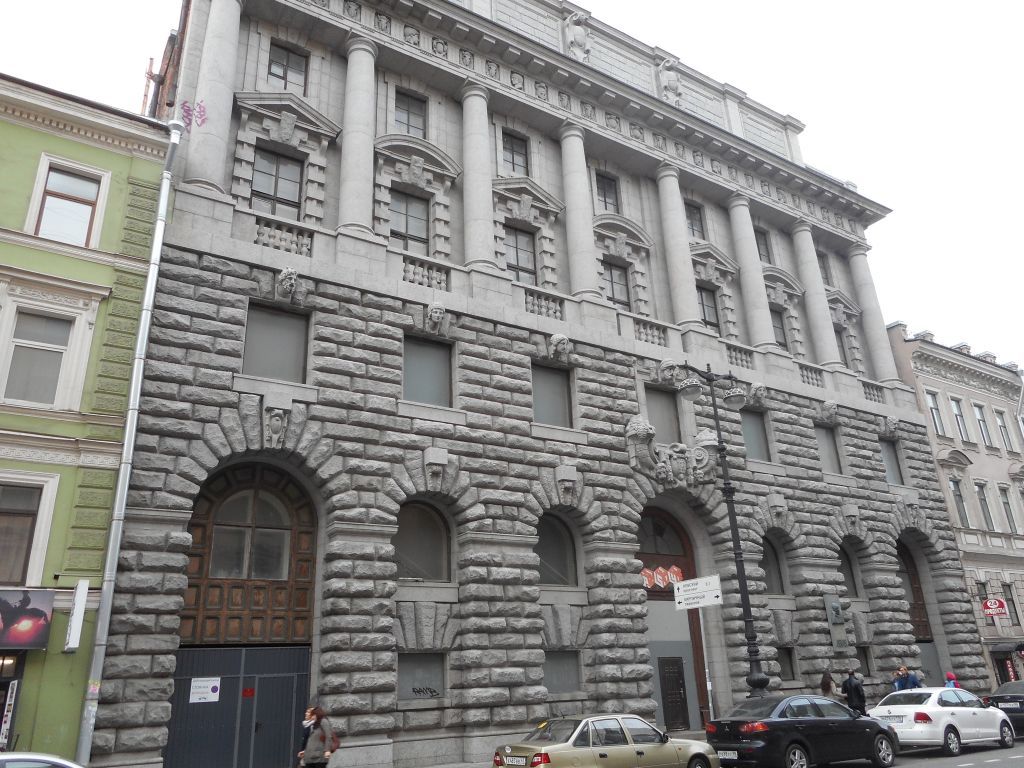Объемно-пространственное решение:конфигурация в плане и габариты пятиэтажного здания, состоящего из лицевого корпуса, примыкающего к нему объема Операционного зала с пониженными боковыми частями и северных дворовых корпусов, образующих замкнутый северный двор; габариты и конфигурация внутренних дворов – двух узких боковых, расположенных по сторонам от Операционного зала, и северного;габариты и конфигурация воротных проездов – ведущих с Большой Морской улицы в боковые дворы и из боковых дворов в северный двор; конфигурация, габариты и высотные отметки крыши, включая открытые террасы на крыше лицевого корпуса и исторические * мансарды; * здесь и далее под историческими понимаются архитектурные решения, конструктивные элементы и детали отделки, выполненные в 1910-е гг. материал кровли – листовой металл, исторический колер его окраски.Конструктивная система здания: исторические наружные и внутренние капитальные стены, габариты, конструкция и архитектурно-художественное решение исторических лестниц: парадной, ведущей от главного входа в вестибюль первого этажа (1Н, пом. 63)* - одномаршевая, со ступенями из белого мрамора, с латунными кольцами ковродержателей, с латунными поручнями (стрежень, оканчивающийся «шишечкой» на трех держателях в виде акантового завитка);двух боковых лестниц в вестибюле первого этажа – одномаршевые со ступенями из белого мрамора, с латунными кольцами ковродержателей,двух симметричных лестниц по сторонам от входа в Операционный зал, ведущих с первого на пятый этаж (восточная – пом. 88, 101, 118, 131, 140 и западная – пом. 80, 90, 106, 123, 136) – с мраморными ступенями, ограждением из фигурных дубовых балясин;лестницы в северном флигеле (пом. 83), ведущей со второго в пятый этаж – многомаршевая, на косоурах, с мраморными ступенями, с металлическим ограждением (вертикальные сдвоенные стойки, декорированные овальными розетками, волютообразные декоративные кронштейны с акантами и овальными розетками), с профилированным фигурным дубовым поручнем; историческое декоративное оформление шахты лифта;исторические перекрытия над помещениями с архитектурно-художественной отделкой, указанными в п. 5* здесь и далее нумерация помещений по планам филиала ГУП «ГУИОН» ПИБ Центрального района в г.Санкт-Петербурге от 07.05.2014исторические световые фонари над Операционным залом и Залом заседаний – первоначальное архитектурное и конструктивное решение, металлические переплеты, первоначальный характер остекления – матовые стекла с орнаментальным рисунком.Объемно-планировочное решение:историческое объемно-планировочное решение в габаритах капитальных стен; первоначальные габариты парадного вестибюля, Операционного зала, Зала заседаний, исторических лестниц, указанных в пункте 3, исторического мансардного помещения 1Н (141) площадью 188,6 кв.м.Архитектурно-художественное решение фасадов:архитектурно-художественное решение лицевого фасада в характере неоклассицизма начала ХХ века, выполненное с использованием мотивов архитектуры итальянского Возрождения:три нижних этажа трактованы как гигантский цоколь, служащий основанием для декоративной колоннады, объединяющей 4-5-й этажи и поддерживающей массивный антаблемент, над которым размещен высокий глухой парапет;материал и характер отделки фасада – серый гранит различной факт