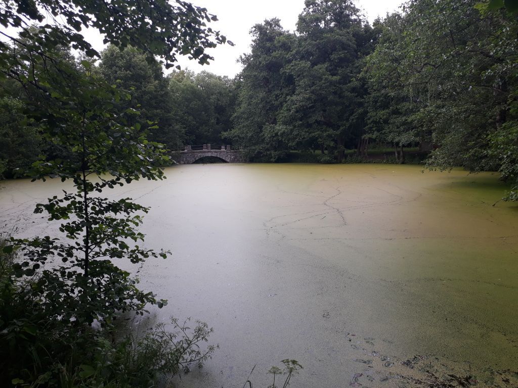 Гидротехническое сооружение:пруд – исторические объемно-пространственное и планировочное решение; исторические местоположение (западная часть парка, восточнее оранжерей, № 17 на плане границ), габариты и конфигурация (включая остров и абрис береговой линии), входит в состав гидросистемы паркового ансамбля Сергиевка.Конструктивная система:берегоукрепление – дерновые откосы;пруд с двух сторон (южной и северной) ограничен 2-мя мостами-плотинами.