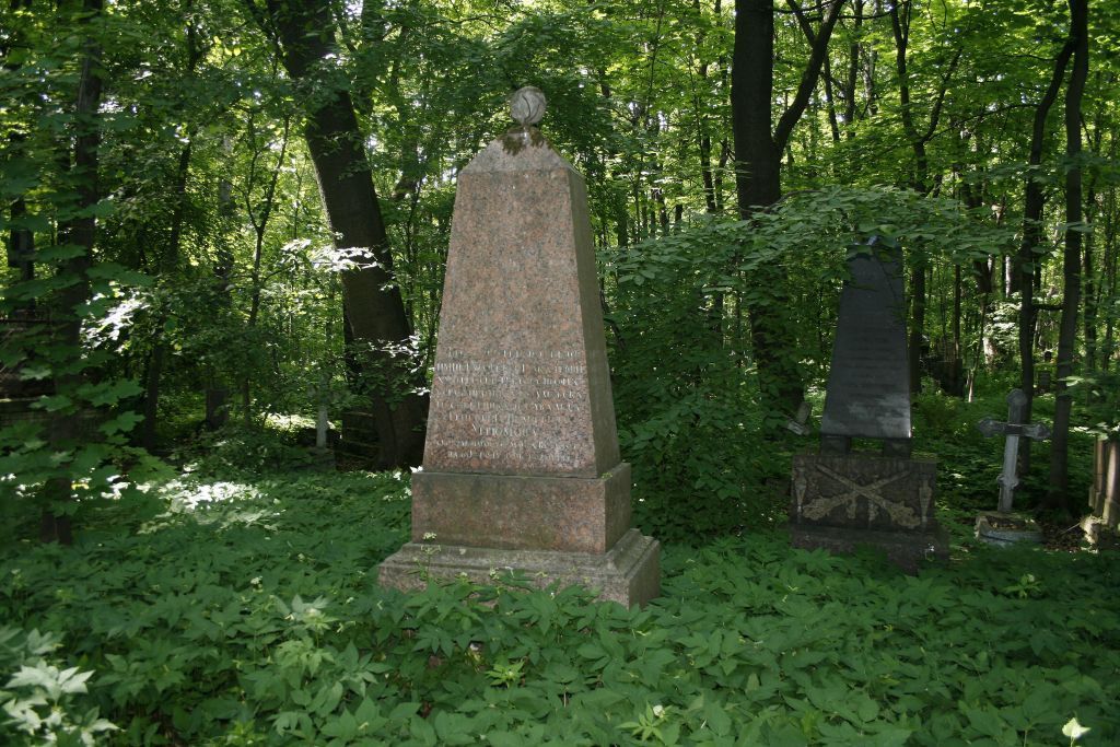 Объемно-пространственное и архитектурно-художественное решение:- местоположение, габариты и конфигурация участка;- историческое художественное решение надгробия (прямоугольный обелиск на пьедестале и основании), вид материала (естественный камень), характер и содержание надгробной надписи.