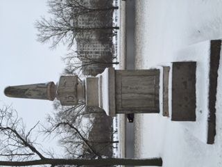 Объемно-пространственное решение:историческое местоположение, конфигурация, габариты;четырехгранный обелиск на трехступенчатом стилобате (гранит рапакиви) на цокольной плите (гранит рапакиви), состоящий из центрального куба на плинте (серый с прожилками рускеальский мрамор), облицованного мраморными зеркалами (розовый тивдийский мрамор) с филенками, завершенного карнизной частью (серый с прожилками рускеальский мрамор);над карнизной частью - обелиск в виде заточенного сверху конуса (гранит рапакиви) на мраморном кубе, установленном на круглом основании (рускеальский мрамор), укрепленном на цоколе (гранит Приладожский) кубической формы;материал столба (мрамор рускеальский, тивдийский; гранит раппакиви; кирпич (основа))цифры, выполненные в контррельефе, тонированные, обозначающие версты «11/13»столб «12/12»;столб «13/11»;столб «10/14»;столб «15/9»;столб «8/16»;