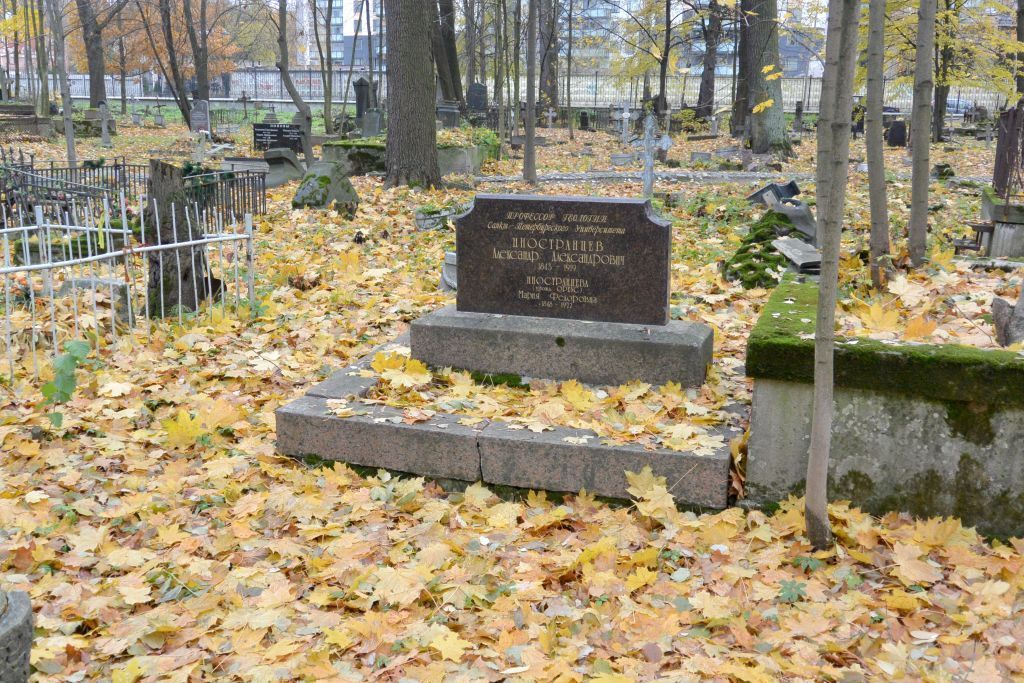 Объемно-пространственное и архитектурно-художественное решение:Местоположение, габариты и конфигурация участка;захоронения в границах участка (семейное место) ; типология надгробия – горизонтальная плита на прямоугольном в плане гранитном основании*;содержание надписей.*Историческое надгробие утрачено.