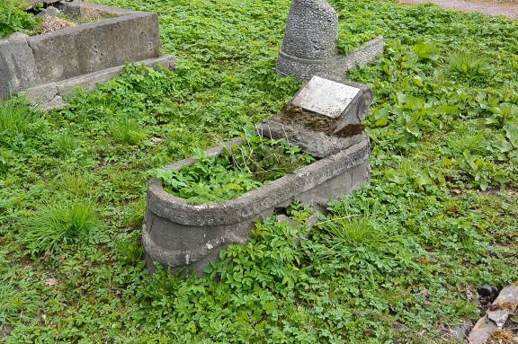 Могила Малоземовой С.А. (1845-1908), пианистки и педагога, 5-й участок, 10-я дорожка1.Объемно-пространственное и архитектурно-художественное решение:историческое местоположение, габариты и конфигурация участка; захоронения в границах участка; надгробие в виде стелы бетонной раковины; характер и содержание надгробной надписи.