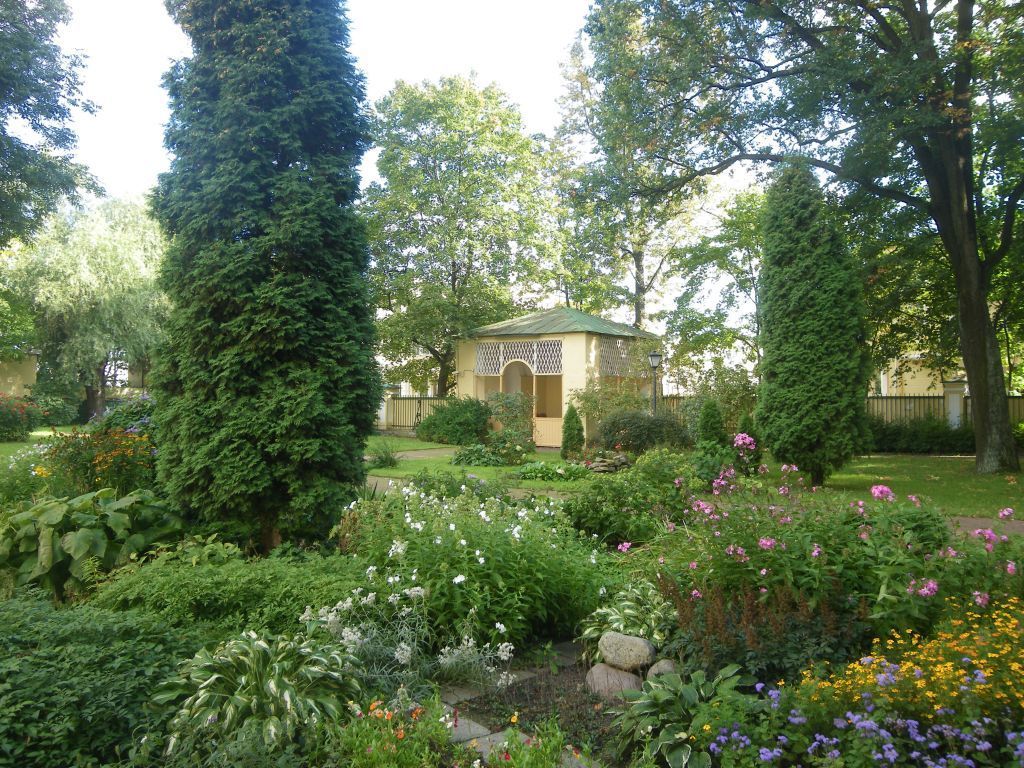 Объёмно-пространственное и планировочное решение, рельеф:историческое ооъемно-пространственноерешение сада:историческая пейзажная планировкасада:исторические дорожки -местоположение, конструкции (набивныена щебеночном основании):рельеф - равнинный.Насаждения:породный состав насаждений: старовозрастной древостой- в том числе: дуб черешчатый. липа мелколистная. клен остролистый, ель обыкновенная.Малые формы:беседка квадратная в плане, завершенная четырехскатной крышей. с двумя глухими стенами (с восточной и южной стороны) и двумя проемами с деревянными заполнениями стрельяжными решетками, декоративной аркой на северном фасаде:местоположение. габариты нконфигурация сооружения в плане: габариты и конфигурация крыши, высотные отметки:оформление интерьера - полуциркульные ниши со сложными профилированными архивольтами.I