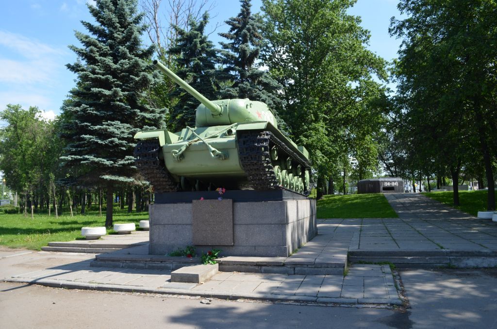 •Объемно-пространственное и объемно-планировочное решение территории:местоположение границ территории; планировочная система регулярного типа;элементы планировочной структуры: приподнятая фигурная мощеная площадка с постаментом с танком у западного края площадки, обсаженная голубыми елями с декоративными вазонами по краям, ведущая от нее на восток мощеная дорожка, расположенные к востоку набивная площадка, обложенная бетонными плитами, мощеная площадка со стелой и декоративными вазонами по краям площадок. Ландшафтные группы и массивы деревьев: Посадки голубых елей по границе площадки с танком;•Монумент «Танк»: танк «КВ-85» на прямоугольном постаменте из гранитных блоков с наклонной площадкой и мемориальной доской на лицевой стороне постамента постамент танка – блоки гранита, с расшивкой швов свинцом; на лицевой стороне постамента мемориальная доска; на доске выбито изображение пятиконечной звезды и текст: «тяжелый танк КВ-85 создан на Кировском заводе. Участвовал в боях в годы Великой Отечественной Войны 1941-1945 гг.»;•Монумент «Дот»: железобетонный Дот неправильной формы, выкрашенный в черной цвет с белыми цифрами «1941-1945» нанесенными над лицевой амбразурой.•Монумент «Стела»:прямоугольная стела из четырех бетонных блоков, на бетонном основании с плитой полированного гранита в завершении; на лицевой стороне стелы выбито и тонировано изображение пятиконечной звезды и мемориальная надпись: «В час смертельной опасности, когда немецко-фашистские войска рвались в город Ленина, мужественные ленинградцы под артиллерийскими обстрелами и авиационными бомбёжками вместе с военными строителями создали непреодолимую оборону с долговременными огневыми точками. Здесь оборонялись части истребительно-противотанковой артиллерии 42 армии».