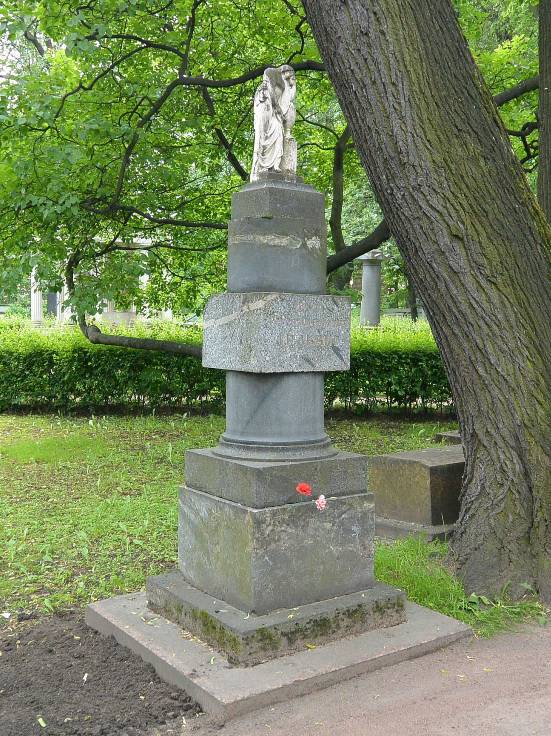 Объемно-пространственное и архитектурно-художественное решение:историческое местоположение захоронения и конфигурация надгробия; историческое решение надгробия в виде мраморного скульптурного изображенгия плакальщицы на квадратном в плане пьедестале из серого гранита и постаменте в виде круглой в плане полуколонны с квадром из габбро, на ступенчатом гранитном основании; характер и содержание надгробных надписей.