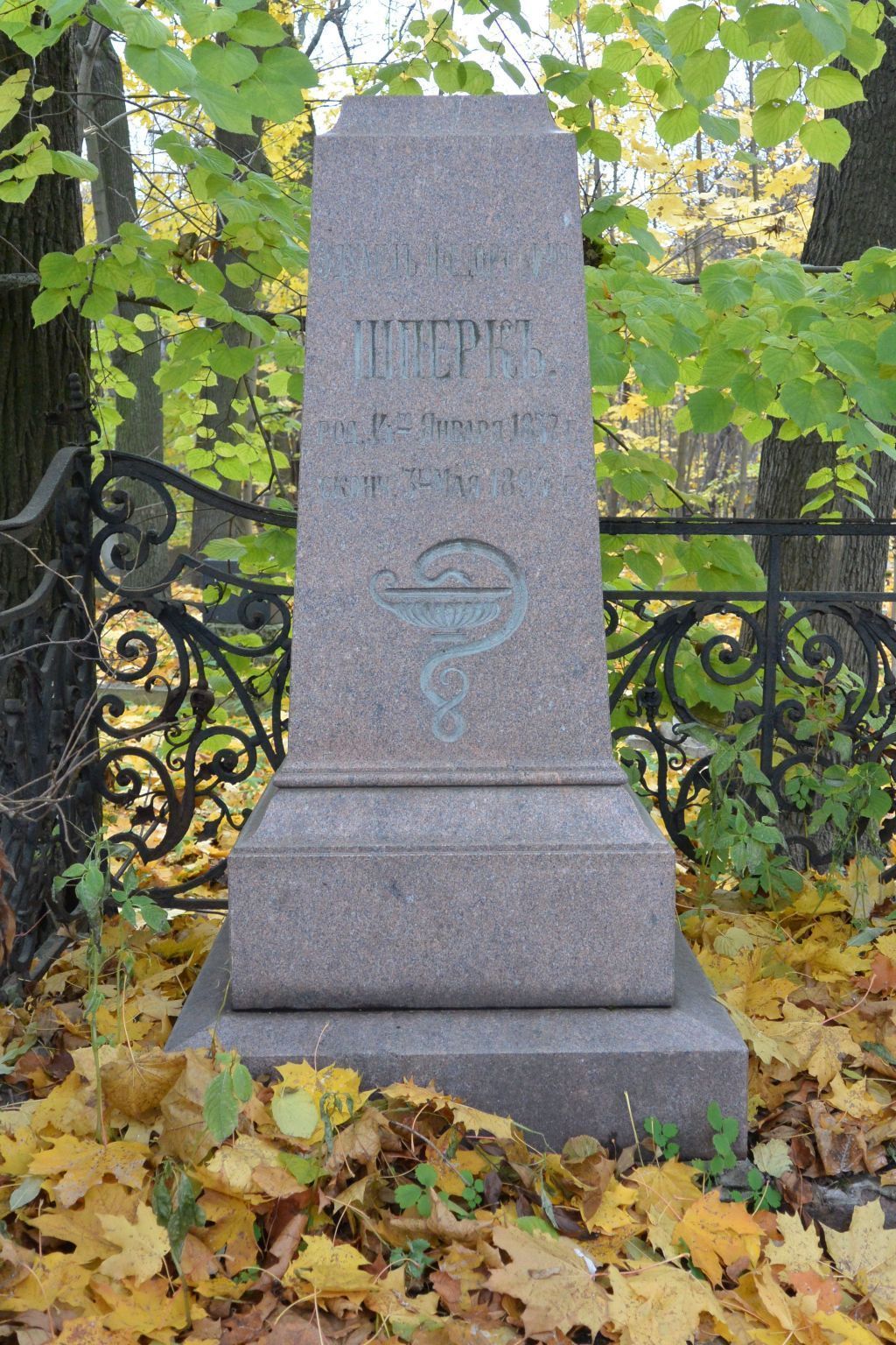 Объемно-пространственное и архитектурно-художественное решение:Местоположение, габариты и конфигурация участка;захоронения в границах территории участка (семейное место);высокий полусклеп с основанием из известняка;прямоугольный в плане гранитный обелиск на гранитном основании; историческая ограда – материал, техника, рисунок; информация – содержание и стиль надписей, символы.