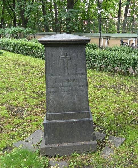 Объемно-пространственное и архитектурно-художественное решение:историческое местоположение захоронения и конфигурация надгробия; историческое надгробие в виде прямоугольной в плане ступенчатой стелы из гранита с четырёхскатным окрытием на гранитном осовании; характер и содержание надгробных надписей.