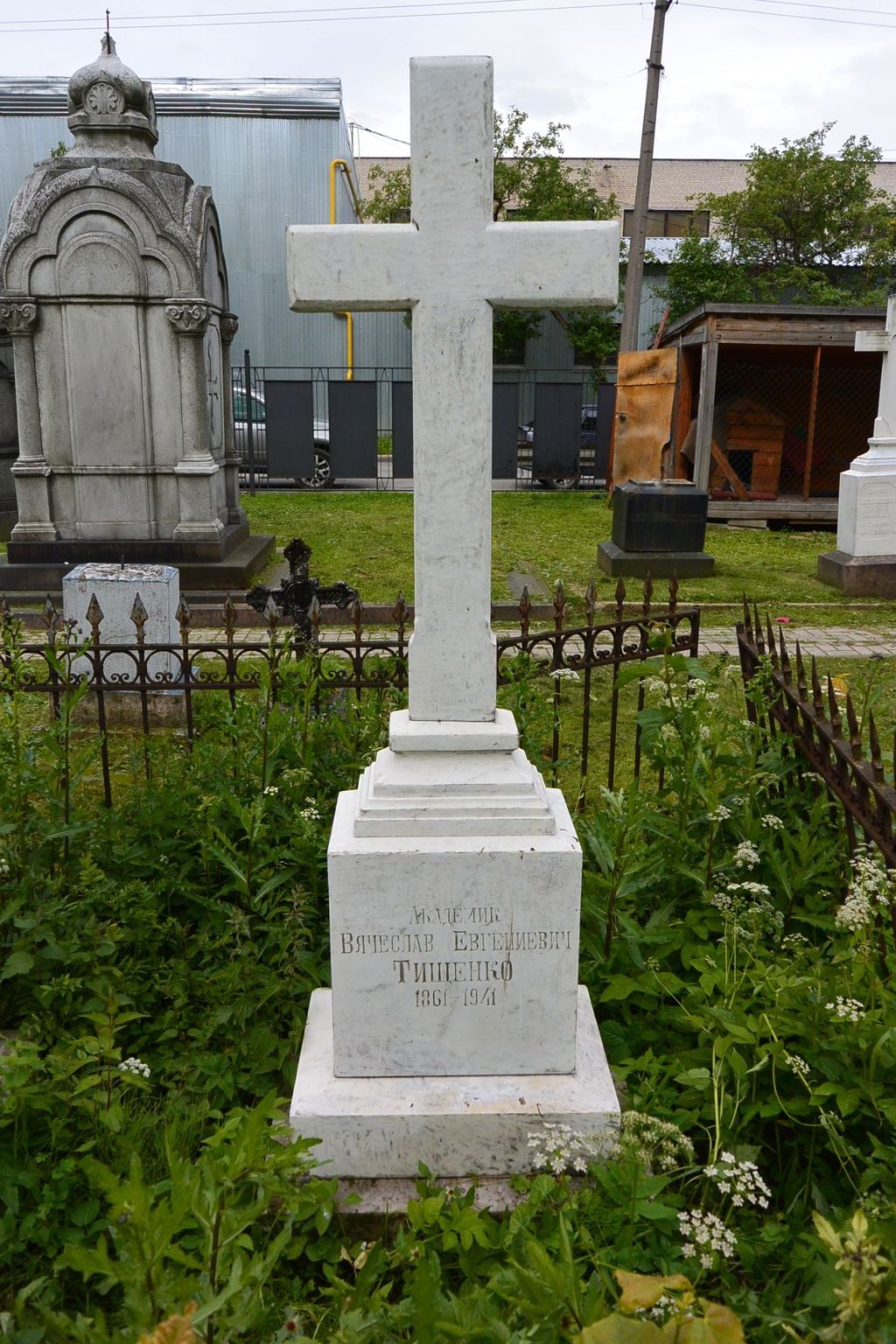 1.Объемно-пространственное и планировочное решение территории: историческое местоположение, габариты и конфигурация семейного участка (№ 13 на схеме); захоронения в границах участка.2.Объемно-пространственное и архитектурно-художественное решение:исторические местоположение, габариты и конфигурация надгробия (семейное место); художественное решение надгробия (крест с фигурным основанием на прямоугольном в плане пьедестале внутри семейного захоронения с поребриком и оградой); вид материала креста и пьедестала (естественный камень); характер и содержание надгробной надписи.