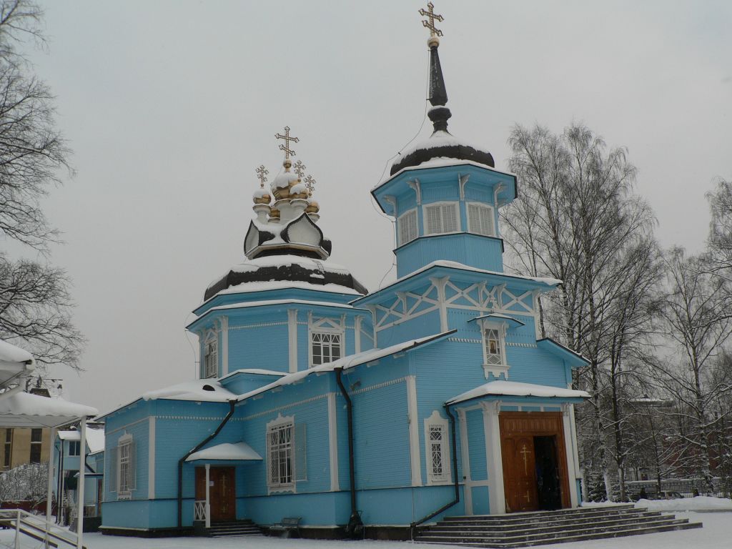 1. Объемно-пространственное и планировочное решение территории:местоположение границ территории.2. Объемно-пространственное решение:габариты и конфигурация (крестообразного в плане) здания церкви с куполом на барабане центрального объема и ярусом «звона» притворной части; крыша габариты и конфигурация (купольная; шатфовая; скатная); вид материала окрытия - гладкая сталь; высотные отметки основного ооъема: купол, завершенный бочкой с декоративным пятиглавием из луковичных главок (центральная большего размера) местоположение (над основным объемом), конфигурация (ребристый криволинейных очертаний), габариты; кокошники в завершении бочки: купол - местоположение (над звонницей). конфигурация (ребристый криволинейных очертаний); шпиль в завершении купола с яблоком и золоченым православным крестом: завершения главок с ажурными металлическими православными крестами, установленными на яблоках: 3. Конструктивная система здания:наружные и внутренние исторические капитальные стены: местоположение. конструкция (сруб), вид материала (дерево): междуэтажные перекрытия - материал (дерево);арочные проемы внутренних стен: крестообразно расположенные три балки и четыре столба - местоположение (в звоннице), материал (дерево): опорные столбы - местоположение.габариты, конфигурация: балки - материал (дерево), конструкция: лестница - историческое местоположение, вид материала (дерево), конструкция (по косоурам). 4. Объемно-планировочное решение:историческое крестообразное объемно-планировочное решение в габаритах бревенчатых стен: высотные отметки основного объема.5. Архитектурно-художественное решение (композиция) фасадов:вид материала и характер отделки цоколя -из известняка: вид материала и характер отделки фасада -широкая вагонка из дерева, способ укладки вагонки (горизонтальный и вертикальный- с досками, стилизующими фахверк), габариты наружной обшивки стен: оконные и дверные проемы -местоположение, габариты, конфигурация; оконные и дверные заполнения -исторический рисунок: фигурные кронштейны, кобылки - материал (дерево), конфигурация: декоративные вертикальные планки материал (дерево); оформление оконных проемов -резные наличники: профилированный карниз большого выноса: наружные исторические лестницы -местоположение, габариты, конфигурация, вид материала (известняк), количество (четыре). 6. Декоративно-художественная отделка интерьеров:пилястры. оформляющие углы под парусами:7. Предметы декоративно-прикладного искусства:оформление оконного проема наружной стены алтарной апсиды - живописный витраж с сюжетом «Воскресение Христово». в правом нижнем углу инициалы «Н.Т.» и левом нижнем углу дата «1907» , материал (офактуренное стекло). техника изготовления (роспись по стеклу силикатными красками); паруса центрального купола: живописные вставки с изображениями евангелистов - количество (четыре): «Евангелист Марк»: «Евангелист Иоанн»; «Евангелист Лука»: «Евангелист Матфей»; оформление подкупольного пространства: паникадило (начало ХХв.): иконостас (начало ХХв.).