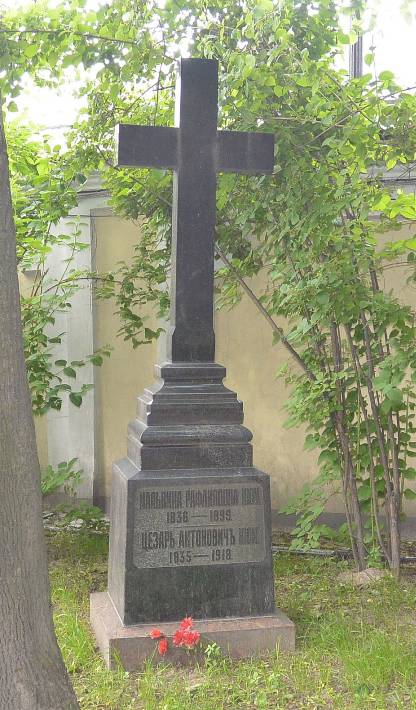 Объемно-пространственное и архитектурно-художественное решение:историческое местоположение захоронения и конфигурация надгробия; историческое решение надгробия в виде каменного креста с фигурным основанием из чёрного гранита на прямоугольном в плане пьедестале из того же материала и основании из красного гранита; характер и содержание надгробных надписей.