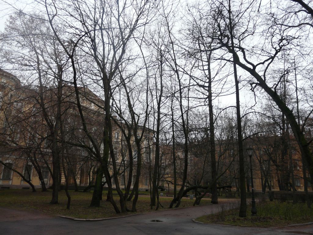 Объемно-пространственное и планировочное решение территории, рельеф:историческая объемно-пространственная композиция сада;планировка сада: регулярная, в том числе широкая главная аллея от здания дворца, второстепенные дорожки, параллельные фасадам зданий;тип сада: регулярный;сочетание ландшафтных групп, аллейных посадок с локальными открытыми пространствами (газонами, площадками и дорожками);визуальное восприятие сада со стороны Казанской улицы;садово-парковые дорожки – трассировка, габариты и конструкция (набивные на щебеночном основании);рельеф – ровный.Насаждения: газоны: обыкновенные;видовой состав деревьев: клен остролистный, липа мелколистная, ясень обыкновенный, вяз шершавый, дуб черешчатый;видовой состав кустарников: кизильник блестящий, снежноягодник приречный, боярышник;историческое цветочное оформление;рядовая посадка липы мелколистной (вдоль диагональной дорожки).
