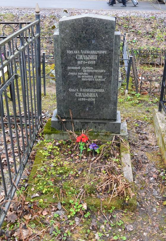 Объемно-пространственное и планировочное решение территории: историческое местоположение в северной части Серафимовского кладбища с восточной стороны Центральной дороги, конфигурация участка семейного захоронения (№ 13 на схеме); захоронения в границах участка;Объемно-пространственное и архитектурно-художественное решениегабариты, конфигурация и объёмно-пространственное решение надгробия в виде прямоугольной в плане вертикально расположенной профилированной стелы из тёмного гранита, на прямоугольном в плане гранитном постаменте с примыкающим цветником, ограниченным поребриком (надгробие с двускатным завершением расположено на земляной площадке, на лицевой полированной поверхности стелы вырублены и тонированы контррельефные шрифтовые литеры); содержание и характерные особенности надгробной надписи.