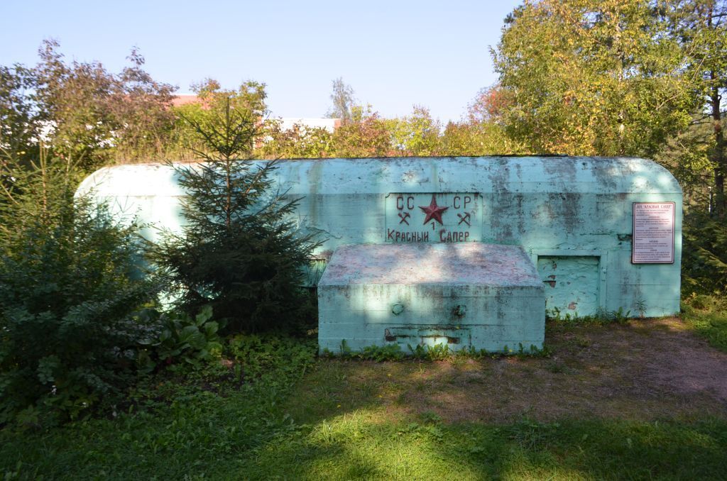Объемно пространственное решение: местоположение, габариты, конфигурация (неправильной формы) двухэтажного монолитного ДОТа. Конструктивная система: материал капитальных стен (железобетон); материал дверей и трубы перископа (броневая сталь). Архитектурно-художественное решение: вылитое из бетона изображение пятиконечной звезды в круге на тыльной стене.