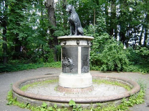 Объемно-пространственное решениеМестоположение на полукруглой площадке аллеи в северо-западной части сада;исторические габариты (высота пьедестала 2 м, высота скульптуры собаки 1 м).цилиндрический пьедестал из серого известняка, на котором установлена бронзовая скульптура сидящей собаки; оформление пьедестала восемью маскаронами в виде головок собак (с отверстиями для воды фонтана) и четырьмя бронзовыми барельефами с эпизодами экспериментальной работы с собаками и текстами И. П. Павлова.