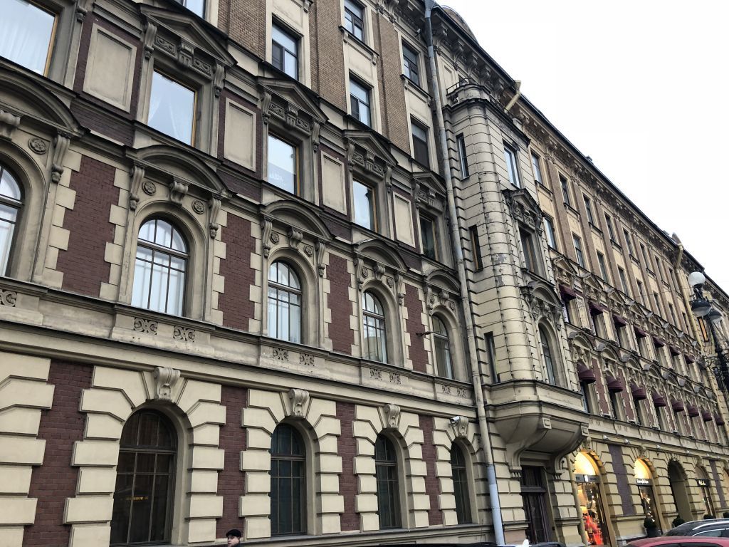 Объемно-пространственное решение:- исторические габариты и конфигурация прямоугольного в плане, вытянутого по оси юго-восток-северо-запад, пятиэтажного на подвалах лицевого корпуса с двумя шестиэтажными, симметрично расположенными, поперечными дворовыми корпусами;- прямоугольный в плане воротный проезд лицевого корпуса- историческая форма, габариты и конфигурация скатных крыш лицевого корпуса (надстроены мансарды);- форма, габариты и конфигурация скатных крыш дворовых корпусов;- высотная отметка коньков здания;Конструктивная система:- фундаменты, исторические наружные капитальные стены; исторические внутренние капитальные стены: местоположение, материал (кирпич);- исторические отметки междуэтажных перекрытий;- коробовые своды с распалубками в основании площадок парадных лестниц 1ЛК и 5ЛК;сводчатые перекрытия в основании парадных лестниц;сводчатые перекрытия в основании площадок служебных лестниц 2ЛК, 3ЛК, 4ЛК, 6ЛК, 7ЛК);коробовый свод воротного проезда;парадные лестницы (1ЛК и 5ЛК): вход организован со стороны Невского проспекта - двухмаршевые, на косоурах, в основании площадок - коробовые своды, ступени и части площадок выполнены из лещадной плиты; металлическое ковано-литое ажурное ограждение выполнено в виде прямоугольных в сечении стоек, декорированных фризом с волютообразными завитками со стилизованными листьями и розетками, под деревянным профилированным поручнем; аналогичное ограждение установлено на промежуточных площадках;два перехода в семь ступеней из лещадной плиты между уровнями вестибюлей парадных лестниц;служебные лестницы – (2ЛК, 3ЛК, 4ЛК, 6ЛК, 7ЛК), вход организован со стороны юго-западного фасада лицевого корпуса, юго-восточного и северо-западного фасадов дворовых корпусов:двухмаршевые на косоурах, в основании площадок – сводчатые перекрытия, ступени выполнены из лещадной плиты; металлическое ограждение выполнено в виде круглых в сечении стоек под деревянным профилированным поручнем;историческое объемно-планировочное решение в габаритах капитальных стен. Архитектурно-художественное решение фасадов:лицевой фасад, лицевого корпуса, выходящий на красную линию застройки Невского проспекта в двадцать четыре световые оси, решен в приемах поздней эклектики: цоколь облицован плитами известняка с профилем по верхнему краю и вставками из кабанчика; характер отделки фасада: оштукатурен, окрашен, со вставками из кабанчика; в уровне первого этажа, а также эркеры на всю высоту обработаны ленточным рустом; простенки оконных проемов в первого, второго-третьего этажей, а также лопатки, объединяющие оконные проемы четвертого-пятого этажей, облицованы кабанчиком; по горизонтали фасад разделен межэтажным карнизом в уровне первого-второго этажей и подоконным карнизом второго, третьего и четверного этажей; завершен профилированным карнизом с поясом иоников и сухариками, покоящимся на парных волютообразных кронштейнах с гуттами; по седьмой и семнадцатой световым осям расположены ризалиты небольшого выноса шириной в одну световую ось; в уровне первого этажа ризалитов расположены прямоугольные дверные проемы парадных лестниц; перед ними - по одной ступени из красного гранита; заполнение дверных проемов*: деревянные, двустворчатые, полусветлые двери с прямоугольными остекленными фрамугами, (*заполнение
