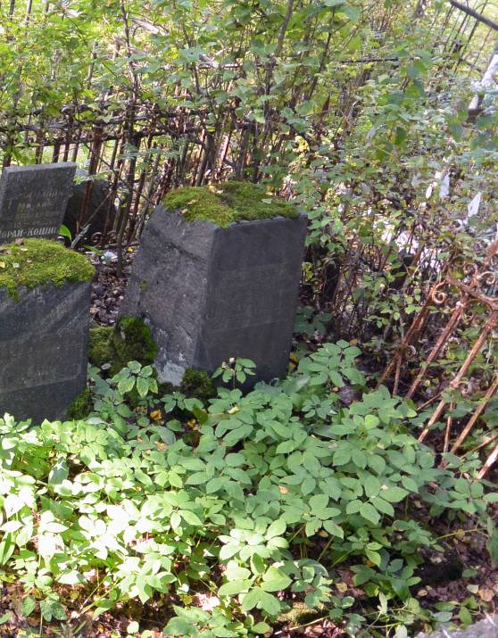 Объемно-пространственное и планировочное решение территории: местоположение могилы в западной части Шуваловского кладбища с северной стороны Пушкинской дорожки, конфигурация участка семейного захоронения (№ 11 на схеме); захоронения в границах участка. Объемно-пространственное и архитектурно-художественное решение:габариты, конфигурация и объёмно-пространственное решение надгробия в виде невысокой стелы-скалы из тёмно-серого гранита с примыкающим цветником, ограниченным бетонным поребриком (надгробие расположено на земляной площадке семейного захоронения, на лицевой полированной поверхности стелы высечены рельефные шрифтовые литеры на фоне кованой фактуры в виде картуша); содержание и характерные особенности надгробных надписей.