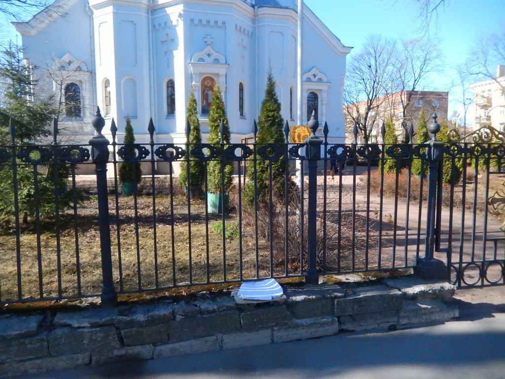 ОградаОбъемно-пространственное решение:местоположение, габариты и конфигурация ограды на цоколе, оформляющей границы участка собора по пр. Ленина и Владимирской ул. Со срезанным углом;Конструктивная система: историческая конструкция ограды, включая: цоколь – местоположение, габариты, конфигурация (прямоугольная в профиле), материал (блоки из известняка);навершие и заполнение ограды – конструкция (опорные столбы, горизонтальные направляющие и вертикальные стойки), местоположение, габариты, материал (металл), техника исполнения (литье, ковка);исторические опорные с цоколями - местоположение, габариты, материал (металл), техника исполнения (литье, ковка).Архитектурно-художественное решение:навершие ограды – оформление и рисунок:опорные столбы, включая опорные столбы ворот и калиток, круглого сечения, на металлическом прямоугольном цоколе (опорные столбы ворот), с прямоугольным основанием навершия, оформленным алмазными гранями с фигурным навершием в виде шара со стлизованным острием в завершении;горизонтальные направляющие (тетивы) прямоугольного сечения, образующие пояс в верхней части ограды, разделенный вертикальными стойками (балясинами) круглого сечения с завершениями в виде пик;в пояс между балясинами вписан орнамент в виде растительных элементов и четырехлучевых звезд.