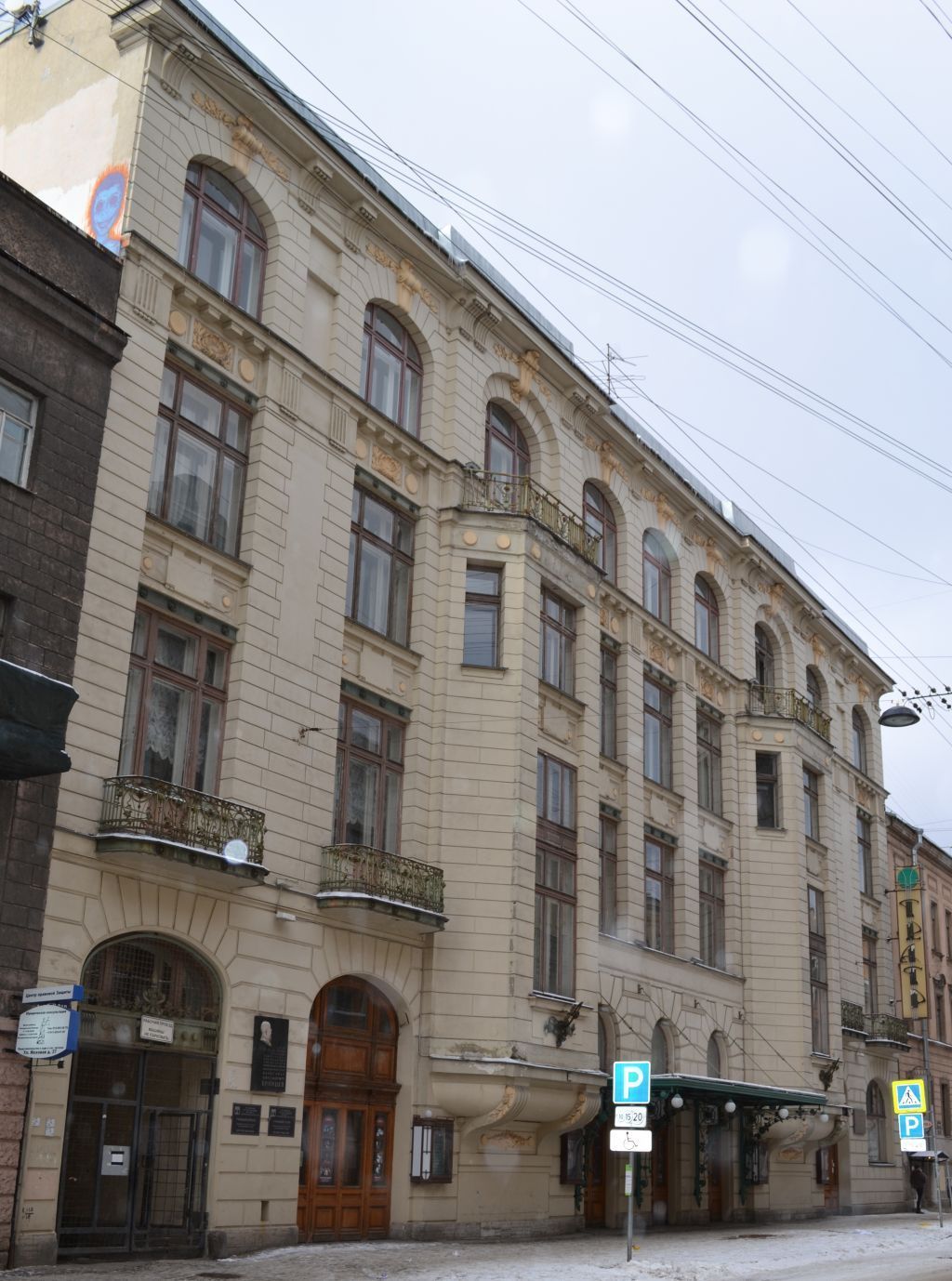 Объемно-пространственное решение: Исторические габариты и конфигурация здания, состоящего из лицевого корпуса по Моховой улице, с полукруглой западной дворовой частью (литера А), П-образного в плане дворового корпуса (литера В) и металлического перехода между лицевым и учебным корпусами; воротный проезд лицевого корпуса – местоположение (по 1-й световой оси), конфигурация (прямоугольный, с антресолью с трехцентровым завершением), габариты;воротный проезд дворового корпуса – местоположение, конфигурация (с плоским перекрытием на подпружных арках с полуциркульным завершением), габариты;крыши – исторические габариты и конфигурация (скатная, купольная), высотная отметка конька;стропильная система крыш – материал (металл), конструкция, в том числе дворовой части лицевого корпуса – радиально расположенные фермы, с перекрестными подкосами.Конструктивная система здания: Исторические наружные и внутренние кирпичные капитальные стены ;конструкции перехода между корпусами;исторические лестницы – местоположение, конструкция, тип, материал ступеней и ограждения, в том числе:средистенная одномаршевая лестница вестибюля на перепаде отметок пола из 10 известняковых ступеней, со ступенчатым боковым ограждением из известняка;двухмаршевые лестницы (Л-1, Л-2) с маршами по косоурам, с известняковыми ступенями с валиком, с металлическим ограждением лестницы из секций с кованым растительным орнаментом из волютообразных завитков с розеткой в центре, с деревянными профилированными поручнями;двухмаршевые лестницы (Л-3, Л-4) с маршами по косоурам, с известняковыми ступенями, с металлическим ограждением лестницы из секций с с рисунком из полуовалов и завитков в стиле модерн, с деревянными профилированными поручнями;двухмаршевая лестница (помещения 1-Н (38,39,51)) с маршами по косоурам, с известняковыми ступенями, с металлическим ограждением из секций с вертикальными стойками, с деревянными профилированными поручнями;средистенная одномаршевая лестница вестибюля дворового корпуса (литера В) на перепаде отметок пола из 10 известняковых ступеней, с небольшими боковыми площадками с металлическим ограждением с рисунком из полуовалов и завитков;двухмаршевые лестницы дворового корпуса (литера В) с маршами по косоурам, с известняковыми ступенями с валиком, с металлическим ограждением лестницы из секций с с рисунком из полуовалов и завитков в стиле модерн, с деревянными профилированными поручнями;с площадками, облицованными метлахской плиткой с рисунком «соты» белого и черного цветов;Объемно-планировочное решение:Историческое объемно-планировочное решение в габаритах капитальных стен.Архитектурно-художественное решение фасадов:Лицевой корпус по Моховой улице:Лицевой фасад:материал отделки цоколя – известняковая скоба;материал и характер отделки фасада – окрашенная штукатурка (гладкая и с разделкой квадровым рустом);оформление и габариты эркеров – основания эркеров скруглены, поддерживают каннелированные кронштейны, на торцовых частях кронштейна лиственный орнамент, в основании подшивки эркера прямоугольные филенки с лиственным орнаментом;оформление воротного проезда – профилированный наличник, веерный замковый камень, образованный рустом, металлическая решетка оконного проема с трехцентровым завершением в уровне антресольн